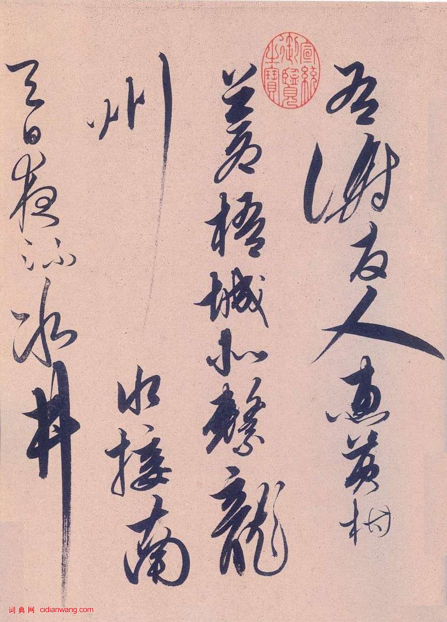 書法欣賞魏晉書法唐朝書法宋朝書法元朝書法明朝書法清朝書法近現代書法字典網>> 歷代書法>> 明朝>> 解縉《草書自書詩》卷(5)正文 解縉《草書自書詩》卷(5)作者:解縉 書體:草書 首 頁 上一頁 1 2 3 4 5 6 7 8 9 10 下一頁 尾 頁解縉的相關書法作品:解縉《草書詩帖》冊 解縉《草書自書詩》卷 相關文章:文徵明行書《紫宸朝下七律詩》 (行書)明代文徵明行書《紫宸朝下七律詩》紙本,尺寸:122x59cm,上海博物館藏。釋文...祝允明《樂志論草書軸》 (草書)祝允明《樂志論草書軸》 縱111.2厘米 橫29.3厘米 蘇州博物館藏圖片來自《...章炳麟篆書《王弼明爻通變文軸》 (篆書)章炳麟《篆書王弼明爻通變文軸》紙本篆書 148×79cm 浙江省餘杭博物館藏釋...李斯篆書《會稽刻石》 (篆書)【釋文】:皇帝休烈,平一宇內,德惠攸長。卅有七年,親巡天下,周覽遠方。遂登會稽,...歐體的先驅《蘇孝慈墓誌》 (楷書)道光十四年(1888年),陝西蒲城出土一個一字不損的墓誌,正書,三十七行,行三十...《九成宮醴泉銘》姚孟起臨本與李琪本比較《九成宮醴泉銘》姚孟起臨本(右),宋拓李琪本(左),發到朋友圈,讓更多人來挑戰吧...李文田《致雨生書札》 (行書)李文田《致雨生書札》。釋文:雨生尊兄大人執事:八月二日接奉手誨,敬悉諸凡,遙瞻矞...米芾行書《天馬賦》 (行書)在米芾傳世的作品中,《天馬賦》被康熙譽為“前無古人”,該作品淋漓痛快,雋雅奇變,...王庭筠·跋米芾《研山銘》 (行草)【釋文】鳥跡雀形,字意極古,變態萬狀,筆底有神,黃華老人王庭筠。王庭筠跋米芾《研...張裕釗《行書沙苑天街七言聯》 (行書)張裕釗《行書沙苑天街七言聯》紙本行書 129×31cm×2 深圳市博物館藏釋...