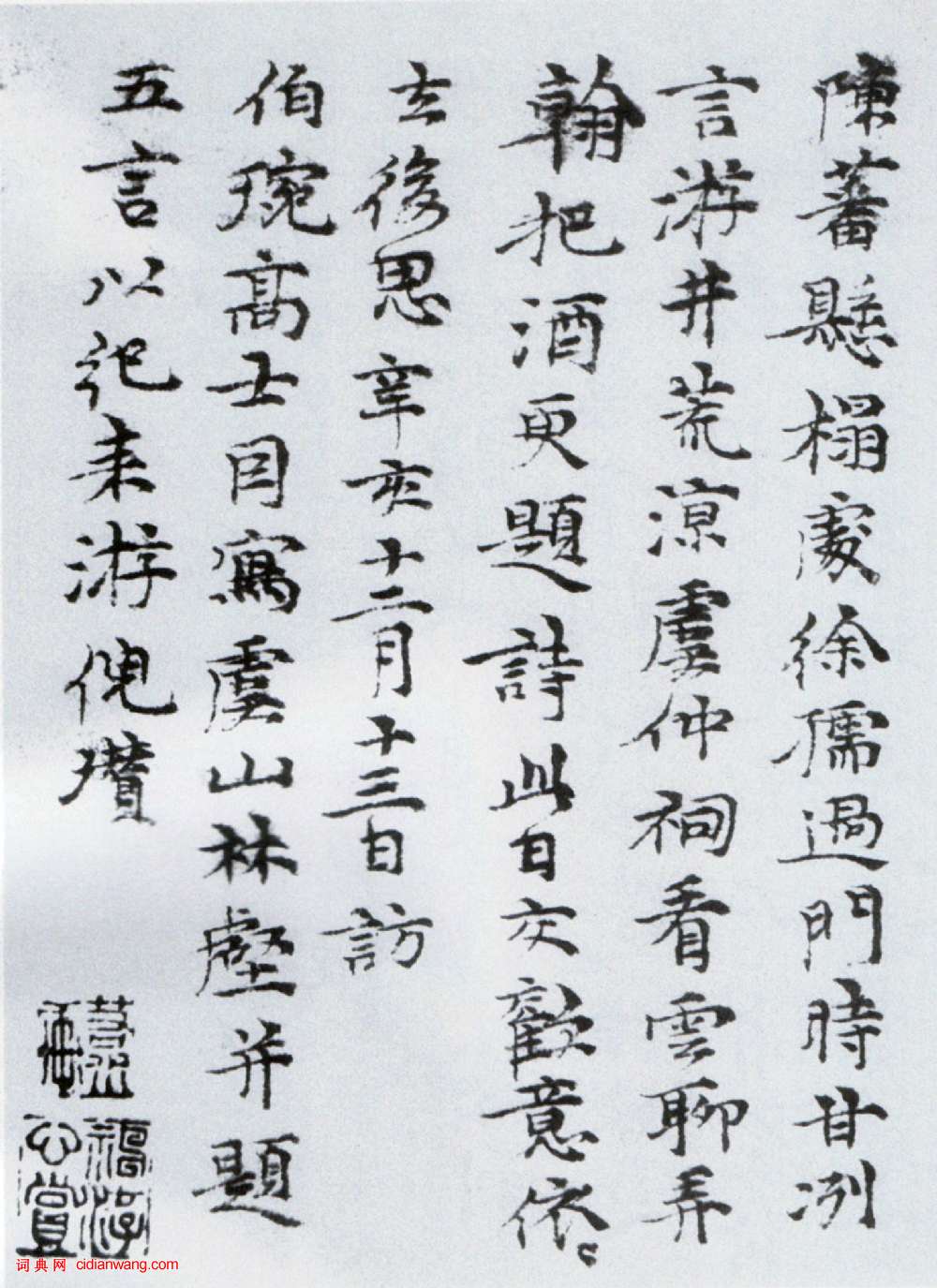 此畫仍取一河兩岸式的構圖,但水中有五道洲渚及一組雜樹,遠山近坡的淡墨皴染較多。畫風較其典型作品繁密。與其盛年所作《漁莊秋霽圖》、《楓落吳江圖》等用線勾括坡石的畫法相比,此圖坡石皴擦善用乾筆,風格渾穆。應是倪氏晚期山水畫的特點。