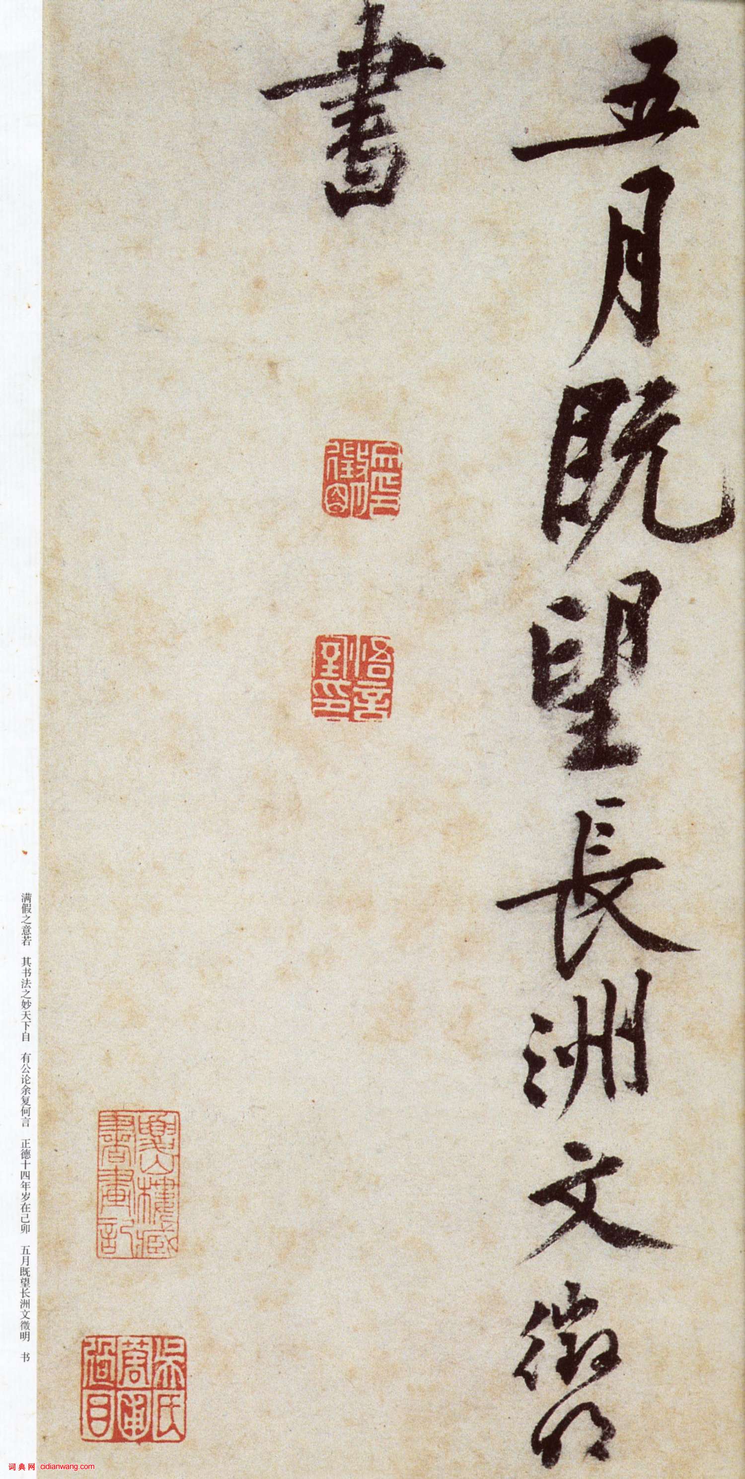 書法欣賞魏晉書法唐朝書法宋朝書法元朝書法明朝書法清朝書法近現代書法字典網>> 歷代書法>> 明朝>> 文徵明《草書詩卷》(4)正文 文徵明《草書詩卷》(4)作者:文徵明 書體:草書 首 頁 上一頁 1 2 3 4 文徵明的相關書法作品:文徵明行草《憶昔四首次陳魯南韻》軸 文徵明《行書五言詩軸》 文徵明《點閘帖》 文徵明小楷《摩訶般若波羅蜜多心經》 文徵明行草《雪詩卷》 文徵明行書題《滸溪草堂圖》 文徵明小楷《偶適溪樓輒題二十韻帖》 文徵明大字行書《題宋高宗賜岳飛手敕》 文徵明行書《苦瘍帖》 相關文章:北魏《孫保造像記》 (楷書)孫保造像記拓片 《孫保造像記》,全稱《北海王國太妃高為孫保造像題記》。約刻於太和...左宗棠《篆書四屏》 (篆書)左宗棠《篆書四屏》 湖南譚國斌當代藝術博物館藏釋文:公曰:嗟!我士聽!無嘩。予誓...王羲之行書《奄至帖》 (行書)王羲之行書《奄至帖》(材官本、澄清堂本、淳化閣帖) 《奄至帖》,5行,36字。行...張瑞圖草書《李白獨坐敬亭山詩軸》 (草書)張瑞圖《草書李白獨坐敬亭山詩軸》紙本 126.5×48cm 藏處不詳【釋文】眾...譚延闓行書《得計風流七言聯》 (行書)譚延闓《行書得計風流七言聯》紙本行書 147x49cm×2 浙江省餘杭博物院藏...趙佶草書《噴香舞雪紈扇》 (草書)宋 趙佶《噴香舞雪紈扇》金花紋絹本,草書,24.4×23.2cm 美國哈佛大學...張旭《心經》 (草書)張旭的《草書心經》最早見於《碑刻拔萃》,其《唐草心經》碑目下寫明張旭,此前碑林中...長沙窯詩文壺《一別行千里》 (行草)行草——青釉褐彩“一別行千里”詩文壺(局部) 高25.1厘米 口徑11.1厘米 ...鄧散木篆書《竹戶松亭五言聯》 (篆書)鄧散木《篆書五言聯》 146x37.5CMx2 憨齋吳南生私人藏釋文:竹戶掩溪...姚鼐《行草高齋西面七言詩軸》 (行草)姚鼐《行草高齋西面七言詩軸》紙本行草書 82.6×37.4cm 湖北省博物館藏...