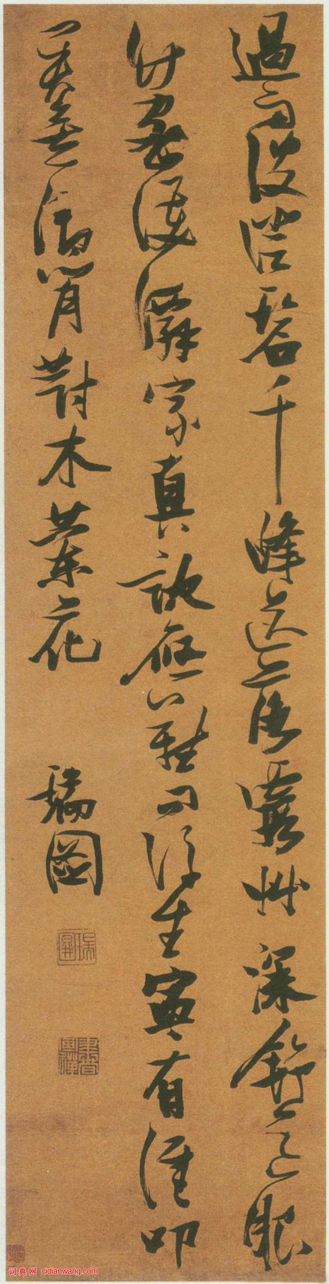 書法欣賞魏晉書法唐朝書法宋朝書法元朝書法明朝書法清朝書法近現代書法字典網>> 歷代書法>> 明朝>> 張瑞圖《草書五律詩軸》正文 張瑞圖《草書五律詩軸》作者:張瑞圖 書體:草書 張瑞圖《草書五律詩軸》 紙本 200X49.5cm西泠印社藏 資料來自《西泠印社百年社藏精品》(西泠印社出版社) 張瑞圖的相關書法作品:張瑞圖《草書偶然作》冊 張瑞圖《行書廣陵三月七絕詩軸》 張瑞圖《草書五律詩軸》 張瑞圖行草《蘇軾無言亭》 張瑞圖《行草書前赤壁賦》 張瑞圖《東坡詞水調歌頭赤壁懷古》 張瑞圖草書《李夢陽夏日過序公詩扇》 張瑞圖小楷《王無功答馮子華書》冊 張瑞圖《行書除卻判無七言聯》 相關文章:戴仁·跋范仲淹《道服贊》 (行楷)【釋文】嗚呼道服非儒也而文正有取焉其自清自潔之謂豈誣也邪然則紆青曳紫面自蒙不潔者...祝允明行草《滿江紅》 (行草)【釋文】擾擾浮生,待足何時是足?據見定:隨家豐儉,便龜縮。得意濃時休進步,須防世...李鱓《行書羅隱七言詩聯》 (行書)李鱓《行書羅隱七言詩聯》紙本行書 126×27cm×2 中國國家博物館藏 釋...伊秉綬隸書楹聯32副 (隸書)伊秉綬(1754—1815)伊秉綬,字祖似,號墨卿,別署南泉、秋水、西湖長,晚號...學小楷需理解這幾點小楷技巧1、小楷總體屬帖學。如能參以漢魏筆意體勢及敦煌寫經之率意,會增加蘊藉雋永之筆致。...林散之跋黃賓虹《黃山臥遊》 (行書)▶釋文:黃山臥遊|前後雲海,一松一石無不入畫,撫琴動操,欲令眾山皆響。 虹叟林散...華世奎楷書《清故文學任先生墓表》 (楷書)華世奎楷書欣賞《清故文學任先生墓表》華世奎(1863~1941)字啟臣,號璧臣。...石濤行書《客三槐堂詩頁》 (行書)石濤《客三槐堂詩頁》紙本行書 北京故宮博物院藏 【資料來源】《...馮文蔚小楷臨《九成宮》 (小楷)用硬筆臨摹傳統的毛筆書法字帖,很少有合適的選擇。很多書友擅長硬筆書法,又想向歐楷...宋克《唐張懷瓘論用筆十法》 (行書)宋克《唐張懷瓘論用筆十法》,紙本,縱46.7厘米,橫37.7厘米。北京文物局藏。...