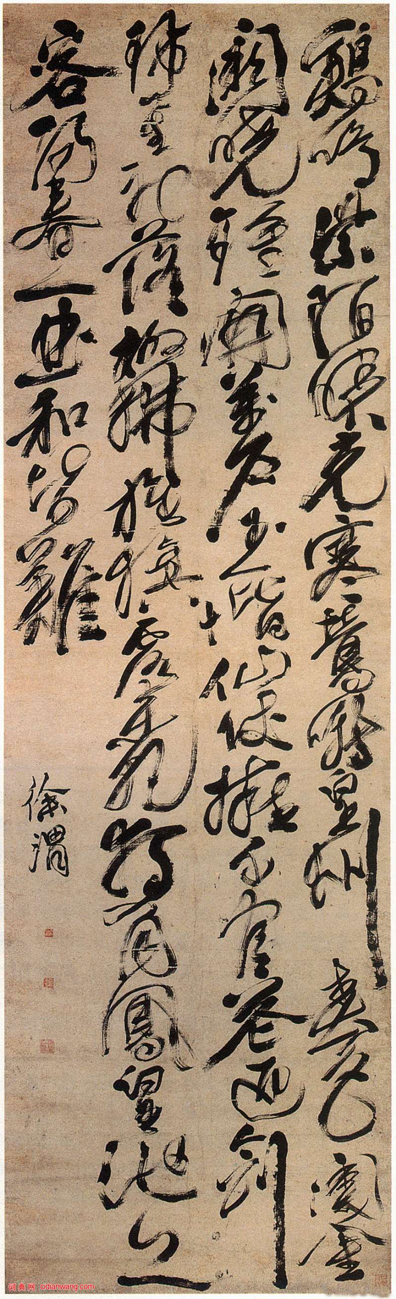 徐渭《草書岑參詩軸》 紙本,353cm×104cm 西泠印社藏