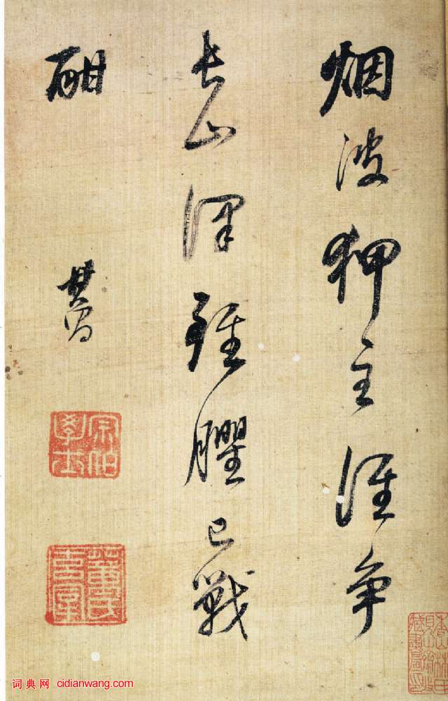 這是董其昌的“書畫合冊”行書三。此冊藏無錫博物館,書法六幀,寫在泥金箋上。