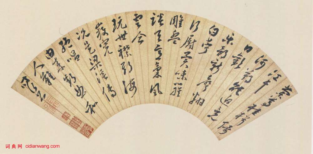 書法欣賞魏晉書法唐朝書法宋朝書法元朝書法明朝書法清朝書法近現代書法字典網>> 歷代書法>> 明朝>> 申時行行草《七律詩扇》正文 申時行行草《七律詩扇》作者:申時行 書體:行草 申時行《行草七律詩扇》 19.4×55cm 蘇州博物館藏釋文: 蘭尊桂楫倚江乾,河朔能迫竟日歡。樂部新聲翻白薴,行廚異味簇雕盤。談天意氣風雲會,玩世襟期海岳寬。況是梁溪傳絕唱,由來郢曲和人難。——時行書。 申時行的相關書法作品:申時行行草《七律詩扇》 申時行《行草七律詩扇》 申時行行草《七律詩扇》 申時行行草《七律詩扇》 申時行行草《書詩冊》 申時行草書《七律詩扇》 申時行草書《五律詩扇》 申時行《行草七律詩扇》 相關文章:何紹基行書 《節錄宗炳畫山水序扇面》 (行書)何紹基《節錄宗炳畫山水序扇面》行書 上海博物館藏釋文:聖人含道應(暎)物,賢者澄...趙之謙《行書校禮堂詩軸》 (行書)趙之謙《行書校禮堂詩軸》紙本行書 183.5×48.9cm 浙江省博物館藏 釋...米芾《公議帖》 (行書)【釋文】芾頓首再拜。長至,伏願制置發運左司學士,主公議於清朝,振斯文於來世,彌縫...吾衍篆書《題張好好詩卷》 (篆書)吾衍篆書題《張好好詩卷》 ...張雨行書《題張彥輔畫詩卷》 (行書)張雨《題張彥輔畫詩卷》 紙本 29.3×148.5cm 無紀年 北京故宮博物院...文徵明行書《雜花詩十二首》 (行書)文徵明89歲書法墨寶《文徵明書雜花詩》卷,金粟山藏經紙,縱26.6厘米,橫390...文徵明89歲所臨《蘭亭序》 (行書)文徵明畫像文徵明是明代中後期最著名的書法家、畫家。書法上與祝允明、王寵並譽為“吳...林散之楷書《自作詩稿》 (楷書)林散之《自作詩稿》紙本楷書 31.8×24.5cm 1947年 馬鞍山林散之藝...薛紹彭行草《致伯充太尉札》 (行草)薛紹彭《致伯充太尉札》 行草書,紙本,23.6×29.7cm 台北故宮博物院藏...李世民《溫泉銘》 (行書)李世民《溫泉銘》拓本 巴黎國立圖書館 《溫泉銘》是唐太宗為驪山溫泉撰寫的一塊行書...