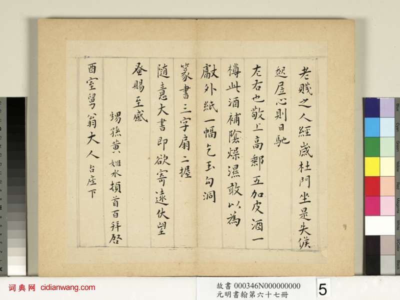 釋文:老賤之人。經歲杜門。坐是失候起居。心則日馳左右也。敬上高郵五加皮酒一樽。此酒補陰燥濕。敢以為獻。外紙一幅。乞玉勾洞。篆書三字扇二握。隨意大書。卽欲寄遠。伏望蚤賜。至感。