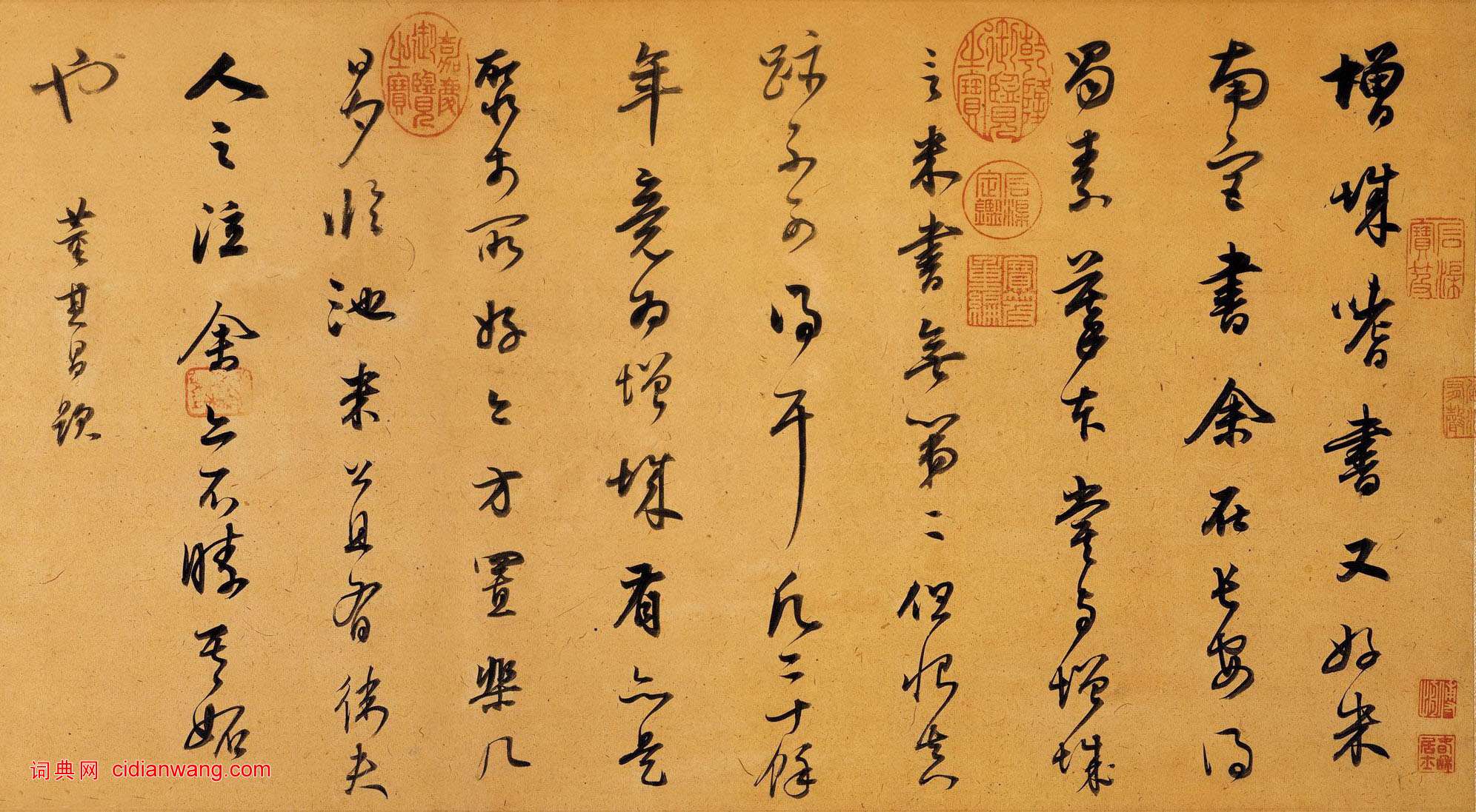 董其昌跋米芾《蜀素帖》,前後共三跋。現存台灣故宮博物院。