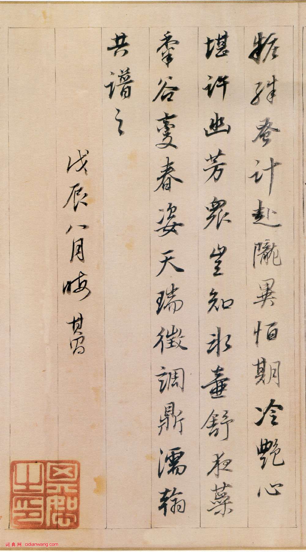 資源下載魏晉書法唐朝書法宋朝書法元朝書法明朝書法清朝書法近現代書法字典網>> 歷代書法>> 明朝>> 董其昌行書《東方朔答客難並自書詩卷》(8)正文 董其昌行書《東方朔答客難並自書詩卷》(8)作者:董其昌 書體:行書 首 頁 上一頁 1 2 3 4 5 6 7 8 全文2016-7-11 8:29:09 董其昌的相關書法作品:董其昌行書 《蘇軾重九詩軸》 董其昌楷書《自誥身帖》卷 董其昌《楷書崔子玉座右銘軸》 董其昌行書臨《顏真卿奉命帖》 董其昌楷書《杜甫冬日洛城北謁玄元皇帝廟詩》 董其昌《行書論書卷》 董其昌行草《小赤壁詩冊頁》 董其昌楷書《五言古詩句》 董其昌草書《自題山水卷》 相關文章:唐寅行書《七律四首詩卷》 (行書)唐寅《行書七律四首詩卷》紙本行書 23×286cm 天津博物館藏釋文:聞太原閣...党懷英篆書《泰和重寶》錢文 (篆書)党懷英 篆書《泰和重寶》錢文 金朝錢幣以精整著稱,技術水平很高。金章宗泰和四年(...顏真卿小楷《麻姑仙壇記》 (小楷)顏真卿楷書書法《麻姑仙壇記》全稱《有唐撫州南城縣麻姑山仙壇記》,有大、中、小字三...東漢隸書《西嶽華山廟碑》 (隸書)《華山廟碑》(四明本)北京故宮博物院藏東漢隸書碑刻。篆額題《西嶽華山廟碑》。延熹...白玉蟾草書《足軒銘卷》 (草書)白玉蟾《足軒銘卷》 紙本草書 32.5×81.5cm,寶慶二年(1226年)北...吳偉業·跋仇英《臨宋蕭照高宗瑞應圖》 (行書)吳偉業跋仇英《臨宋蕭照高宗瑞應圖》,行書,縱33厘米。故宮博物院藏。張瑞圖行草《書王建宮詞等四首條屏》 (行草)張瑞圖《書王建宮詞等四首條屏》 綾本行草書 261×94.5cm×4條 日本...唐寅《行書絕句四條屏》 (行書)釋文:杏花春雨晚晴天,篙檝沖煙放釣船;恰有一壺寒食酒,卻邀同局話新年。吳郡唐寅。...王岩叟行書《與給事淳夫侍講札》 (行書)王岩叟《與給事淳夫侍講札》行書.紙本 222.0×29.0 cm釋文:岩叟啟 ...趙之琛《隸書臨成陽靈台碑軸》 (隸書)趙之琛《隸書臨成陽靈台碑軸》紙本隸書 136.7×42.6cm 浙江省博物館藏...