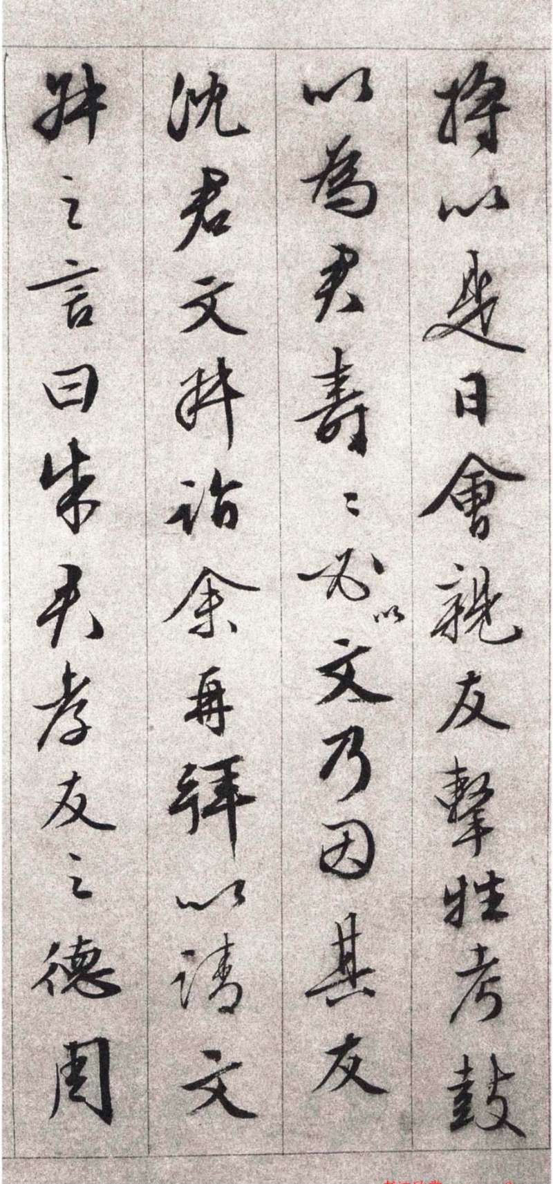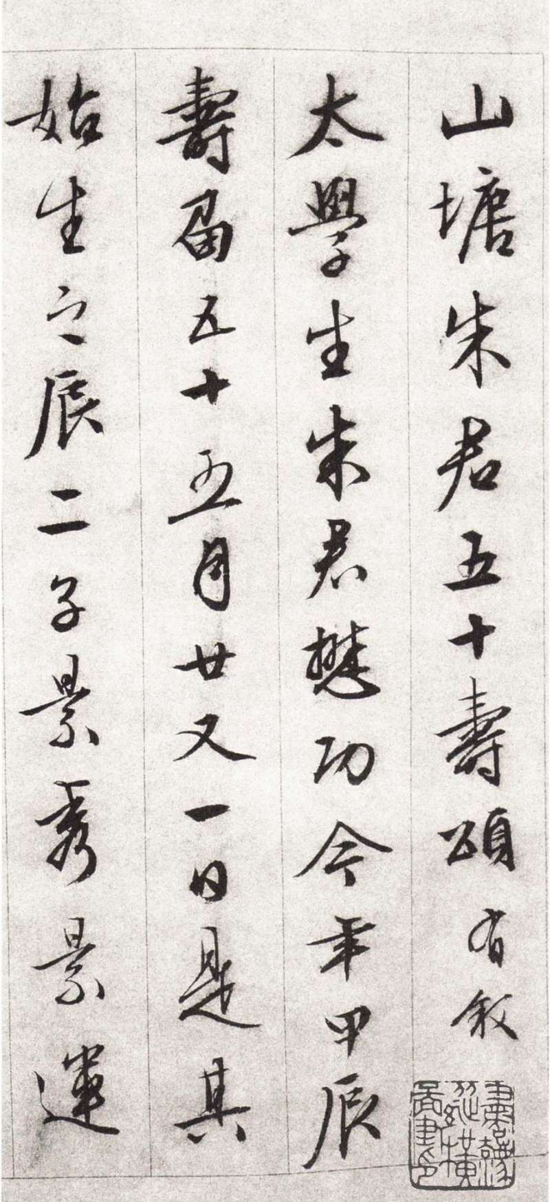 書法欣賞魏晉書法唐朝書法宋朝書法元朝書法明朝書法清朝書法近現代書法字典網>> 歷代書法>> 明朝>> 文徵明行書《朱懋功五十壽頌卷》正文 文徵明行書《朱懋功五十壽頌卷》作者:文徵明 書體:行書 文徵明行書《朱懋功五十壽頌卷》,本手卷為紙本,長為248厘米,寬為24.5厘米。榮寶齋藏。1 2 3 4 5 6 7 8 9 10 下一頁 尾 頁文徵明的相關書法作品:文徵明行書《為沈天民作滸溪草堂圖》 文徵明行書手卷 文徵明·小楷蓮社圖記 文徵明行書《游西苑詩》兩幅 文徵明行書《苦瘍帖》 文徵明小楷《致四叔公、五叔公札》 文徵明行草《千字文》 文徵明《行書五言詩軸》 文徵明《草書七絕詩軸》 相關文章:唐伯虎行書《落花詩冊》 (行書)沈周因喪子而撰寫落花七律十首,此為唐寅和之《落花詩冊》共30首。他看到地上落英滿...黃庭堅楷書《徐純中墓志銘》 (楷書)黃庭堅書法欣賞《徐純中墓志銘》,楷書,正方形,青石質。書於元祐二年(1087年)...篆刻“六補”是什麼意思【導讀】作為藝術的構成因素章法、字法、筆法和刀法不是那么能機械的分開的,往往是相...趙之謙《楷書風流辨雕八言聯》 (楷書)趙之謙《楷書風流辨雕八言聯》紙本楷書 168.5×36.5cm×2 浙江省博...漢曹全碑原石照片 (隸書)▶曹全碑,全稱漢郃陽令曹全碑,東漢中平二年十月立。明萬曆間出吐於陝西郃縣舊城,1...成親王小楷《群仙高賦會》 (小楷)和碩成親王,清朝世襲親王。乾隆五十四年(1789年),乾隆帝皇十一子永瑆封親王,...鍾紹京·靈飛經 (小楷)《靈飛經四十三行墨跡本》,美國紐約大都會藝術博物館藏,每頁20.8×8.9cm...林散之《楷書節錄智果書頌》 (楷書)林散之《楷書節錄智果書頌》紙本楷書 127×29cm 1953年 馬鞍山林散之...張雨行書《自書詩冊》 (行書)至正五年(1345) 張雨《自書雜詩冊》粉花箋 23.7×15.3cm×24...柳公權小楷《神道碑》 (小楷)柳公權柳公權(778年-865年),字誠懸,漢族,京兆華原(今陝西銅川市耀州區)...