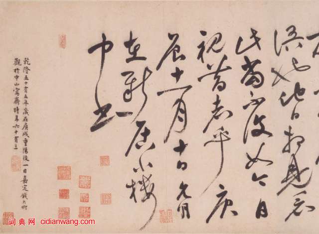 書法欣賞魏晉書法唐朝書法宋朝書法元朝書法明朝書法清朝書法近現代書法字典網>> 歷代書法>> 明朝>> 祝允明草書《自書詩卷》(5)正文 祝允明草書《自書詩卷》(5)作者:祝允明 書體:草書 首 頁 上一頁 1 2 3 4 5 祝允明的相關書法作品:祝允明草書《桃源圖詩冊》 祝允明·小楷洛神賦 祝允明《草書懷知詩卷》 祝允明楷書《祖允暉慶誕記》 祝允明行草·歸田賦 祝允明《七律壽礪庵詩》 祝允明《草書杜甫秋興八首》 祝允明《致元和手札》 祝允明·行書牡丹賦 相關文章:司馬垔·跋范仲淹《道服贊》 (行書)【釋文】予嘗謂士君子能為光明俊偉之事業必先有高潔灑落之胸次為之地也範文正道服贊所...釋擔當·春來草書軸 (草書)【釋文】春來無日不狂游,折得梅花插滿頭。一來為僧天教我,而今七十當風流。擔當。釋...北魏《一弗為張元祖造像記》 (楷書)一弗為張元祖造像記拓片 《龍門二十品》的第二品《一弗為張元祖造像記》(簡稱《一弗...吳熙載篆書《庾信詩》 (篆書)吳讓之篆書庾信詩。此卷高四十九厘米,橫三百二十七點五厘米,紙本。篆字二十七行,行...邢侗《行書臨柳公權論筆帖》 (行書)邢侗《行書臨柳公權論筆帖》 上海博物館藏 【資料...宋徽宗趙佶《題李白上陽台帖》 (楷書)趙佶《題李白上陽台帖》紙本 縱28.5cm 跋28.5 x 38.1 cm 北京...唐寅·自書詞卷 (行書)釋文《集賢賓》。紅樓畫閣天縹緲,玉人乘月吹簫。一曲涼州聲裊裊,到此際離愁多少。青...鄧石如《四體書冊》之《雪齋清境楷書冊》 (楷書)鄧石如《四體書冊》之《雪齋清境楷書冊》 嘉慶二年(1797) 日本東京國立博物館...戴熙《行書潛神邁德八言聯》 (行書)戴熙《行書潛神邁德八言聯》 紙本行書 135.3×32cm×2 浙江省博物館...黃庭堅草書《蘇軾赤壁懷古》 (草書)北宋黃庭堅行草書法欣賞《黃魯直書大江東詞》原始拓本18圖赤壁懷古民國拓本,蘇軾撰...
