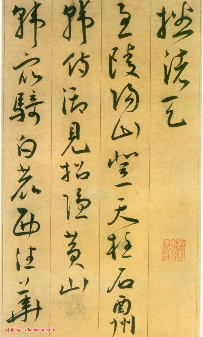 資源下載魏晉書法唐朝書法宋朝書法元朝書法明朝書法清朝書法近現代書法字典網>> 歷代書法>> 明朝>> 王寵草書《李白古風詩卷》(5)正文 王寵草書《李白古風詩卷》(5)作者:王寵 書體:草書 首 頁 上一頁 1 2 3 4 5 6 7 8 9 10 下一頁 尾 頁王寵的相關書法作品:王寵草書《李白詩卷》 王寵草書《送李願歸盤谷序》 王寵小楷《辛巳書事詩七首》 王寵小楷《送陳子齡會試詩》 王寵《小楷五言詩扇面》 王寵行書《玄墓之行帖》 王寵草書《送友生游茅山詩》 王寵小楷《為海濱先生書五言詩扇》 王寵草書《自書五憶歌》 相關文章:中國書法最俊216字!這是極具學習價值的216個字,相當漂亮!全部來自王羲之、米芾、趙孟頫等名作,它們...北魏《元略墓誌》 (楷書)全稱“魏故侍中驃騎大將軍儀同三司尚書令徐州刺史太保東平王元君志銘”。志文正書,共...顏真卿楷書《陋室銘》集字 (楷書)顏真卿陋室銘釋文:山不在高,有仙則名。水不在深,有龍則靈。斯是陋室,惟吾德馨。苔...文天祥·謝昌元座右自警辭 (草書)【釋文】 周公謂魯公曰:君子不弛其親,不使大臣怨乎?不以故舊無大故,則不棄也。孔...盧中南楷書《題衛夫人筆陣圖後》 (楷書)盧中南,男,1950年12月生於武漢,祖籍河南濟源。中國著名書法家,享受國務院政...黃庭堅行書《題王詵詩帖》 (行書)黃庭堅《題王詵詩帖》 紙本行書 29.2×22.3cm 北京故宮博物院藏 ...傅山醫術高,看書法能斷生死?傅山(1607-1684)明清之際思想家、書法家。於學無所不通,哲學、醫學、儒學...長沙窯詩文壺《蓬生麻中》題記壺 (楷書)楷書——青釉褐彩“蓬生麻中”題記壺 高18.3厘米 底徑11.2厘米 湖南省博物...貫雲石草書 《題趙孟頫雙駿圖》 (草書)貫雲石《題趙孟頫雙駿圖》紙本草書 縱19cm 台北故宮博物院藏(故-畫-001...王寵小楷《謝康樂詩》 (小楷)王寵《小楷謝康樂詩》扇面 金箋,楷書,縱17.7cm,橫54.3cm。 北京故宮...