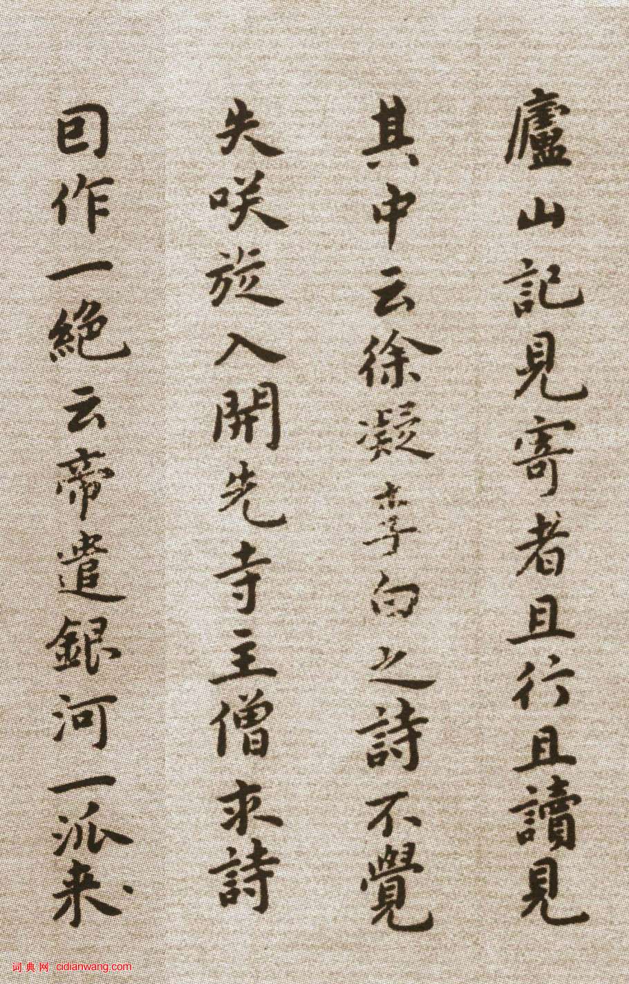 資源下載魏晉書法唐朝書法宋朝書法元朝書法明朝書法清朝書法近現代書法字典網>> 歷代書法>> 明朝>> 祝允明小楷《東坡記游卷》(7)正文 祝允明小楷《東坡記游卷》(7)作者:祝允明 書體:小楷 首 頁 上一頁 3 4 5 6 7 8 9 10 11 12 下一頁 尾 頁祝允明的相關書法作品:祝允明·跋李應楨《雜錄冊頁》 祝允明小楷《和陶飲酒詩》 祝允明草書《自書詩卷》 祝允明《草書杜甫秋興詩》 祝允明《草書五言詩扇面》 祝允明草書《桃源圖詩冊》 祝允明楷書《燕喜亭等四記》 祝允明《七律壽礪庵詩》 祝允明《楷書千字文》 相關文章:戚繼光《送李小山歸蓬萊詩》 (行書)戚繼光行書《送李小山歸蓬萊詩》 紙本。130.6×90厘米。山西省博物館藏。這...王寵《小楷五言詩扇面》 (小楷)王寵《小楷五言詩扇面》冊頁 紙本 35×67cm 台北故宮博物院藏 釋文:這五...趙孟頫行書《昔尋李願詩卷》 (行書)趙孟頫《昔尋李願詩卷》, 紙本,行書,縱30cm,橫99.5cm。北京故宮博物院...歷代書法經典論著大觀兩漢▼許慎《說文解字序》崔瑗《草書勢》趙壹《非草書》蔡邕《筆論》《九勢》兩晉▼成...楊妹子·七言詩一首 (楷書)楊妹子《七言詩一首》,楷書,美國普林斯頓大學附屬圖書館藏。沈曾植《行草書孟浩然夜泊牛渚詩軸》 (行草)沈曾植《行草書孟浩然夜泊牛渚詩軸》紙本行草書 147×40cm 嘉興博物館藏 ...龍門二十品《比丘法生造像記》 (楷書)法生造像記拓片簡稱《法生造像》,《比丘法生造像記》,全稱《比丘法生為孝...草書?不妨試試這樣創作草書是一門變幻豐富、表現性極強的藝術,它作為一種書體形式的出現被人們認識即具有天...趙佶·蔡行敕卷 (行書)【釋文】敕蔡行。省所上劄子。辭免領殿中省事。具悉。事不久任。難以仰成。職不有總。...金農隸書《水樂洞小詩橫披》 (隸書)《隸書水樂洞小詩橫披》 1745年作 縱67.5厘米 橫87厘米 中國國家博物館...