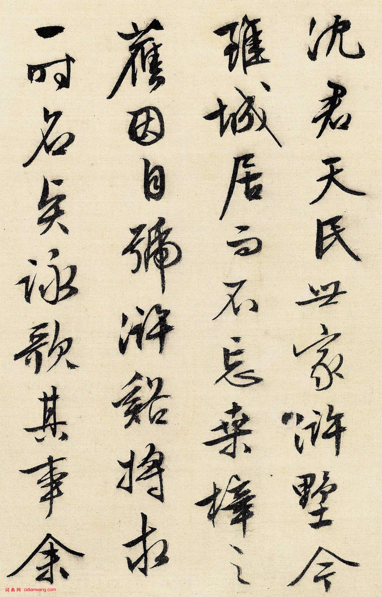 沈君天民,世家滸墅.今雖城居,而不忘桑梓之舊,因自號“滸溪”,將求一時名賢詠歌其事,余既為作圖,復賦此詩,以為諸君倡。“滸墅”一名“虎墅”,按《圖經》:“秦始皇求吳王寶劍,白虎蹲於丘上,西走二十五里而失,故名虎疁。”吳越諱“鏐”,因改“疁”為“墅”,又訛“虎”為“滸”雲。 何處閒雲築草堂,虎疁溪上舊吾鄉。 百年魚鳥常關念,一曲風煙似自藏。 南望帆檣依樹轉,西來墟落帶山長。 最憐出郭紅塵遠,春水還堪著野航。文徵明