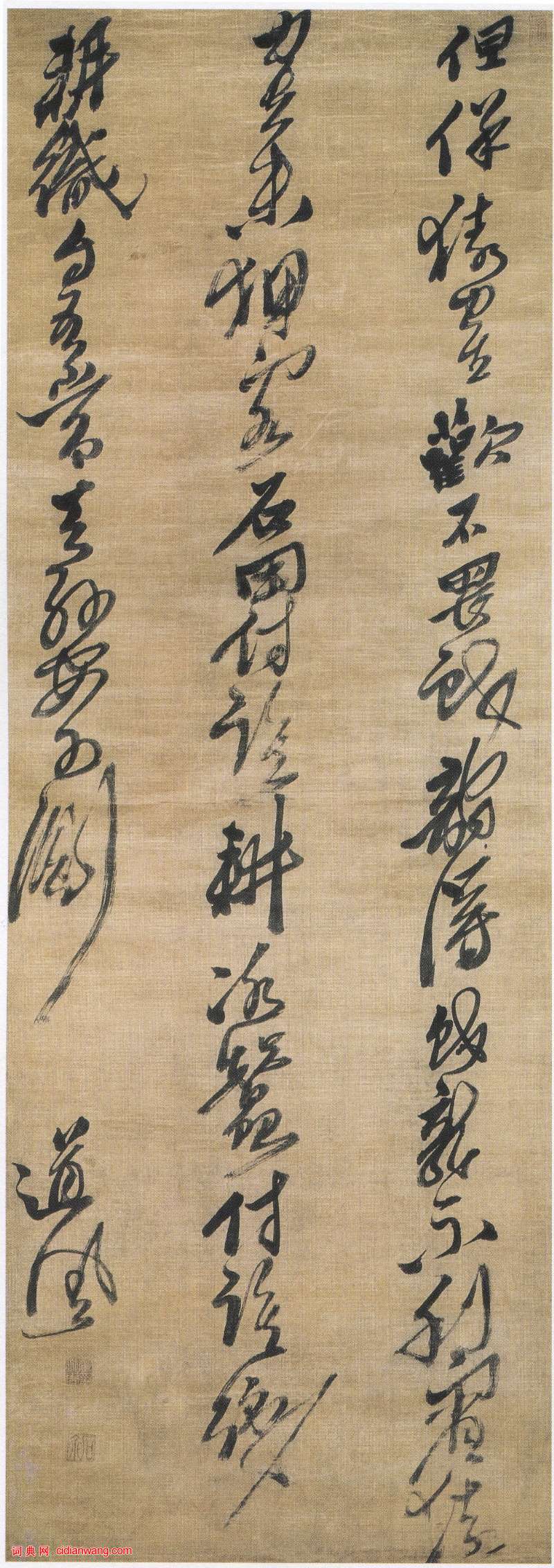 黃道周《草書自作五言詩軸》 綾本草書 138.5×48.9cm 南通博物苑藏
