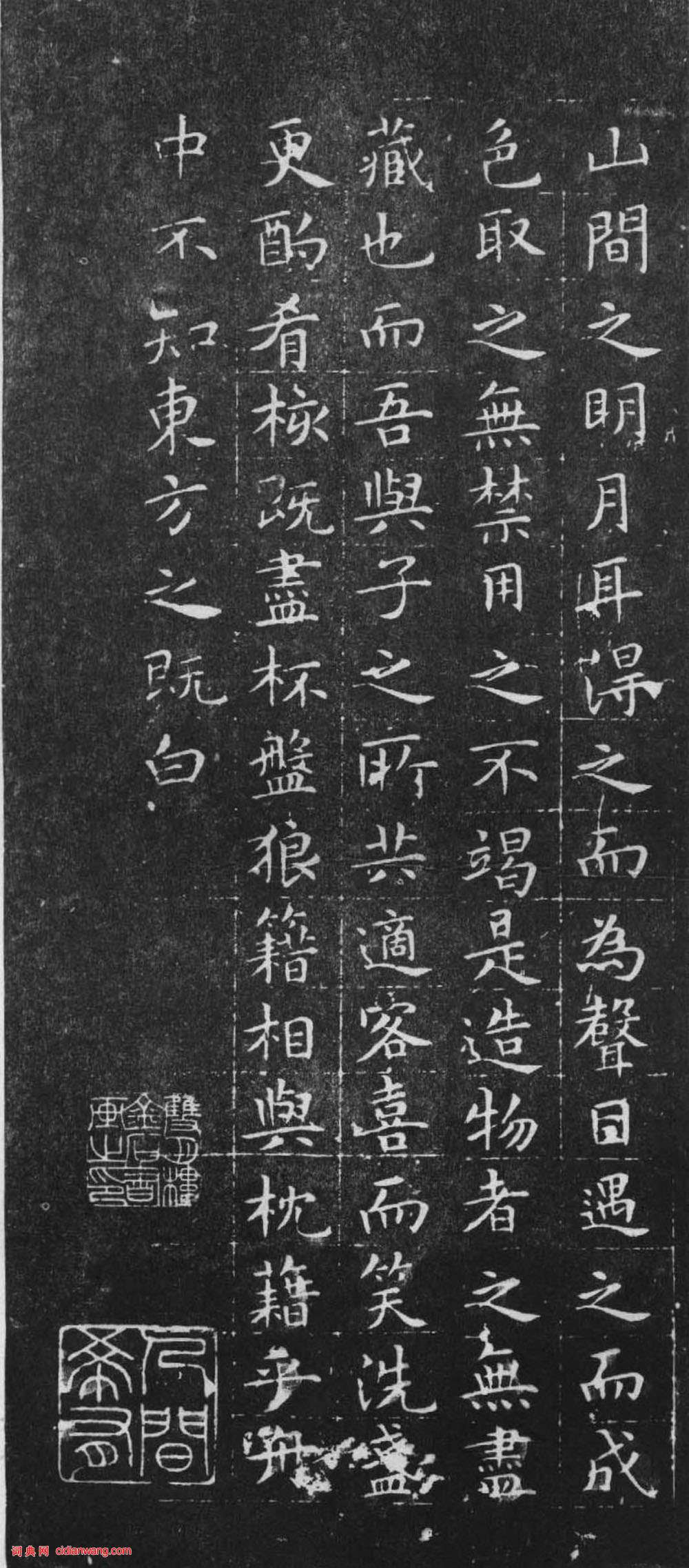 書法欣賞魏晉書法唐朝書法宋朝書法元朝書法明朝書法清朝書法近現代書法字典網>> 歷代書法>> 明朝>> 文徵明小楷《前後赤壁賦》拓本(3)正文 文徵明小楷《前後赤壁賦》拓本(3)作者:文徵明 書體:小楷 首 頁 上一頁 1 2 3 4 5 6 下一頁 尾 頁文徵明的相關書法作品:文徵明行書《游西苑詩》兩幅 文徵明行書 《剡藤湘竹七言詩軸》 文徵明行書《自書五言詩扇》 文徵明大字行書《游虎丘詩卷》 文徵明《草書七絕詩軸》 文徵明行書《觀李成之寒林平野圖後長歌》卷 文徵明小楷《琴賦》 文徵明行書手卷 文徵明行書《紫宸朝下七律詩》 相關文章:成親王草書《百家姓》 (草書)成親王愛新覺羅·永瑆(1752-1823) 善收藏。著有《詒晉齋詩文集》及《續...范仲淹《邊事帖》 (行書)【釋文】仲淹再拜,知府刑部仁兄:伏爲起居萬福。施鄉曲之惠,占江山之勝,優哉樂乎。...康里巎巎行書跋趙孟頫《太上老君說常清靜經》 (行書)康里巎巎 跋趙孟頫《太上老君說常清靜經》 行書 30.2×161.3cm 至正...趙佶·蔡行敕卷 (行書)【釋文】敕蔡行。省所上劄子。辭免領殿中省事。具悉。事不久任。難以仰成。職不有總。...吳熙載行書《節臨顏真卿爭坐位帖扇面》 (行書)吳熙載《節臨顏真卿爭坐位帖扇面》紙本行書 18.1×53cm 北京故宮博物院藏...張雨行書《上閒止詩卷》 (行書)張雨《上閒止詩卷》紙本 29.4×41.6cm 至正九年(1349) 台北故...趙孟頫小楷《高上大洞玉經》 (小楷)趙孟頫小楷《高上大洞玉經》元代至元二十八年八月,三十八歲的趙孟俯在北京為友人民瞻...黃庭堅楷書《狄梁公碑》 (楷書)書於紹聖元年(1094)六月。宋拓本。楷書。凡175行,共1910字。帖心高23...康有為《行書題蓮池書院立軸》 (行書)康有為《行書題蓮池書院立軸》 紙本行書 139.5cm×73.5cm 山東博物...周伯琦·楷書朱德潤墓志銘 (楷書)《周伯琦楷書朱德潤墓志銘》簡介:本篇是周伯琦為友人朱德潤撰寫的墓志銘。朱德潤(1...