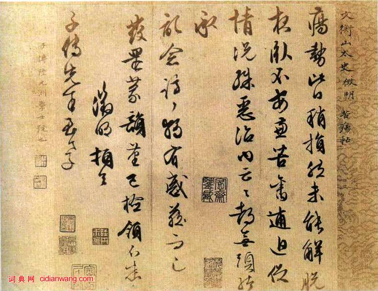 書法欣賞魏晉書法唐朝書法宋朝書法元朝書法明朝書法清朝書法近現代書法字典網>> 歷代書法>> 明朝>> 文徵明行書《苦瘍帖》正文 文徵明行書《苦瘍帖》作者:文徵明 書體:行書 文徵明行書《苦瘍帖》釋文:瘍勢比日稍損,然未能解脫,夜臥不安,兼苦舊逋迫促,情況殊惡。治內云云,都無頭緒。承記念諄諄,獨有感藏而已。發還篆韻,堇(謹)已檢領,不悉。徵明頓首子傳先生至孝文徵明的相關書法作品:文徵明行草《千字文》 文徵明《草書詩卷》 文徵明行書《太液池詩》軸 文徵明《草書七律立軸》 文徵明《行草口號十首卷》 文徵明狂草詩卷 文徵明《草書七絕詩軸》 文徵明小楷《四山五十詠》 文徵明行書《張一川小傳》 相關文章:薛紹彭草書《元章召飯帖》 (草書)薛紹彭《元章召飯帖》 粉箋紙 草書 28.1×38.4cm 台北故宮博物院藏 ...陸釴·跋陸游《懷成都十韻詩卷》 (行書)陸釴跋陸游《懷成都十韻詩卷》,行書,縱34.6cm。故宮博物院藏。伊秉綬《行書七言詩軸》 (行書)伊秉綬《行書七言詩軸》 釋文:雪晴雲散北...查士標·行草詩冊 (行草)查士標《行草詩冊》,上海朵雲軒藏。查士標(1615--1698),字二瞻,號梅壑...石濤《楷隸行三體雜錄卷》 (行書)石濤《楷隸行三體雜錄卷》紙本 93×24cm 台灣藏 ...吳熙載《篆書吳均“與朱元思書”四條屏》 (篆書)吳熙載《篆書吳均“與朱元思書”四條屏》(上圖來自《書法》雜誌1980年第三期)【...吳承恩《扇面七言律詩》 (行草)【釋文】十年塵夢繞中冷,今日攜壺試一登。醉把花枝歌水調,戲書蕉葉乞山僧。青天月落...陳奕禧草書《七絕立軸》 (草書)陳奕禧《草書七絕立軸》紙本草書 71.2×23.7cm 雲南省博物館藏釋文:長...北魏楷書《高道悅墓誌》 (楷書)《高道悅墓誌》,北魏神龜二年(公元519年)刊,1969年出土于山東省德州城北胡...蔣仁《行書柳子米南八言聯》 (行書)蔣仁《行書柳子米南八言聯》紙本行書 133×28cm×2 上海道明拍賣有限公...