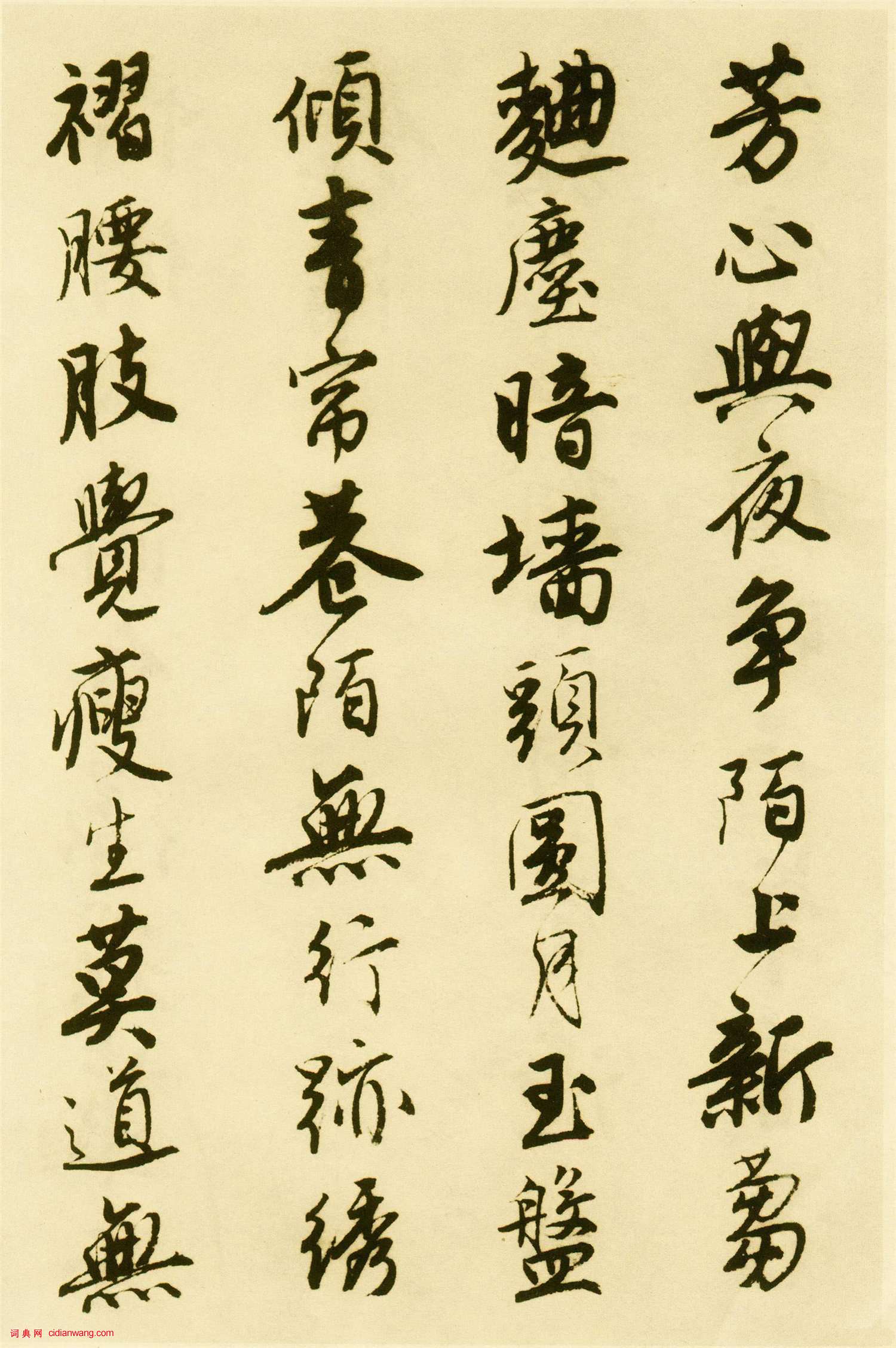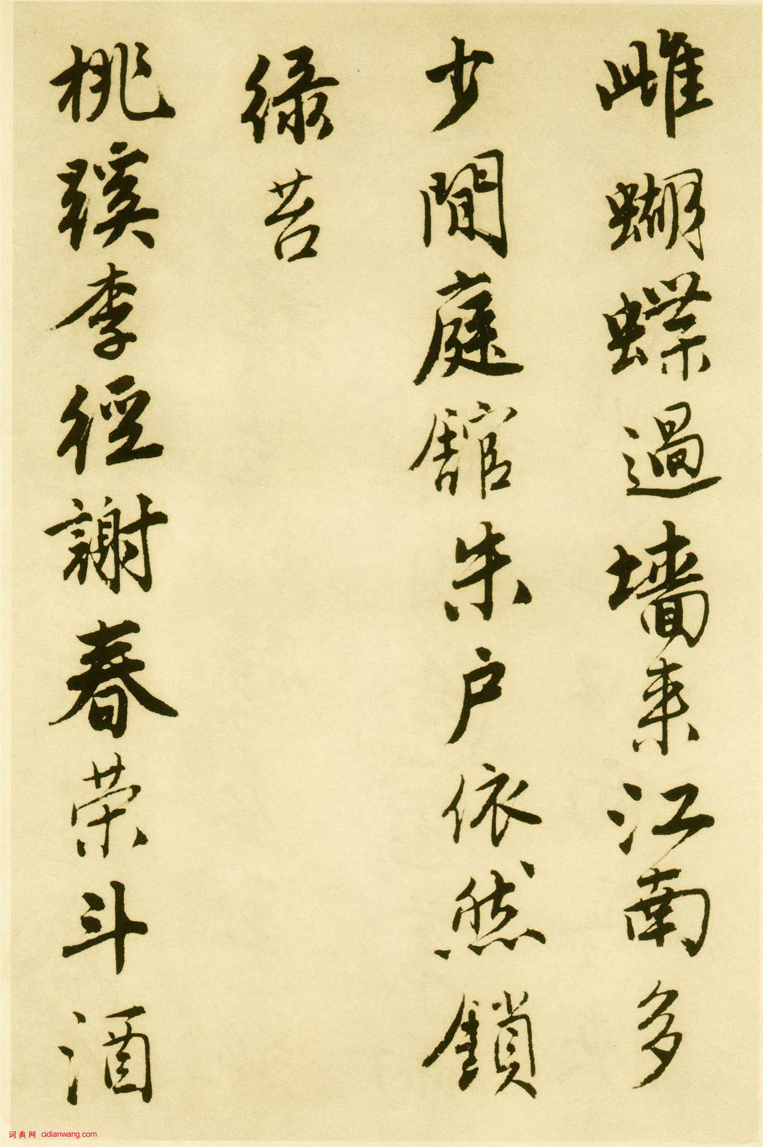 資源下載魏晉書法唐朝書法宋朝書法元朝書法明朝書法清朝書法近現代書法字典網>> 歷代書法>> 明朝>> 唐寅行書《落花詩冊》蘇州市博物館藏本(16)正文 唐寅行書《落花詩冊》蘇州市博物館藏本(16)作者:唐寅 書體:行書 首 頁 上一頁 12 13 14 15 16 17 18 19 20 21 下一頁 尾 頁唐寅的相關書法作品:唐寅行書《自書集賢賓等詞卷》 唐寅行書《蜀葵圖扇面》 唐寅《行書七律四首詩卷》 唐寅行書《七言絕句四條屏》 唐寅行書《望湘人·春日花前詠懷詩扇面》 唐寅行書《跋宋王詵江山疊翠圖》 唐寅行書《自書聯句詩》 唐寅行書題《立石叢卉圖》 唐寅行書 《秋風紈扇圖題詩》 相關文章:虞世南楷書集字唐詩《虞世南楷書集唐詩》是(2010年4月1日)西泠印社出版社出版的圖書。帖中的範字...趙奕·跋趙孟頫《後赤壁賦》 (行書)趙奕跋趙孟頫《後赤壁賦》,行書,縱27.2厘米。現藏台北故宮博物院。王鐸《行書嵩縣詩軸》 (行書)王鐸《行書嵩縣詩軸》,紙本,縱163厘米,橫48厘米 崑崙堂藏 《行書...柳公權楷書《復東林寺碑》 (楷書)柳公權《復東林寺碑》 楷書 唐大中十一年(857)崔黯撰文, 石在江西廬山。東林...董其昌《草書扇面》 (草書)《草書扇面》董其昌書。縱15.5公分,橫47.7公分。榮寶齋藏。此幀扇面書法寫的...虞世南行草《疲朽帖》 (行草)虞世南《疲朽帖》拓本 行草書 25.7×43厘米 《淳化閣帖》卷四收錄 上海博...陳奕禧草書《七絕立軸》 (草書)陳奕禧《草書七絕立軸》紙本草書 71.2×23.7cm 雲南省博物館藏釋文:長...米芾·吳江舟中詩卷 (行書)【釋文】昨風起西北,萬艘皆乘便。今風轉而東,我舟十五縴。力乏更雇夫,百金尚嫌賤。...蘇軾行書《歸園帖》 釋文 (行書)蘇軾《歸園帖》 北京故宮博物院藏 【歸園帖釋文】: 此確雲同歸院,亦不雲宿於院...西漢篆書《居攝兩墳壇刻石》 (篆書)《居攝兩墳壇刻石》清以前發現的西漢石刻甚少,據宋尤袤《硯北雜記》說:“聞自新莽惡...