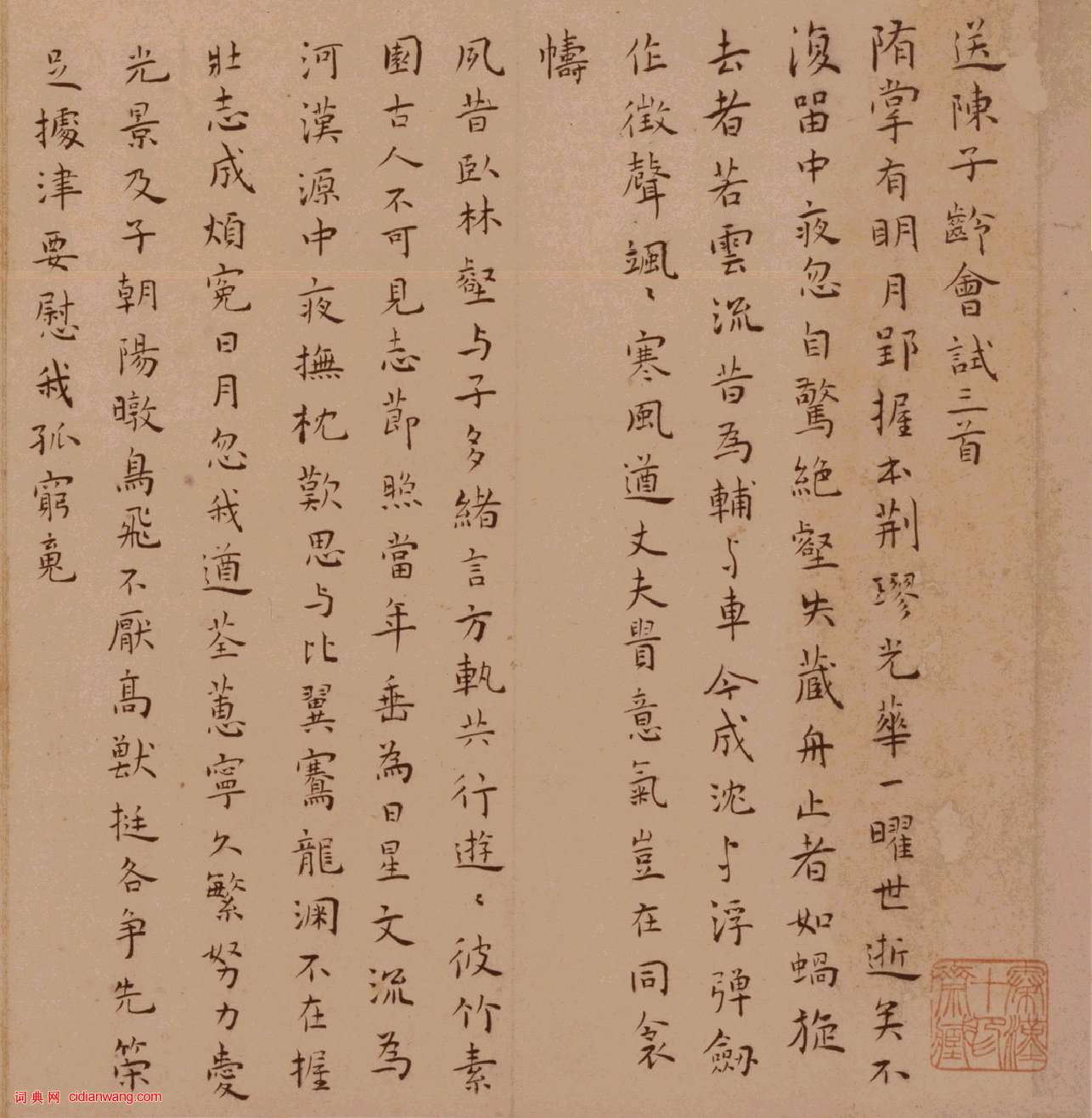 王寵小楷《送陳子齡會試詩》