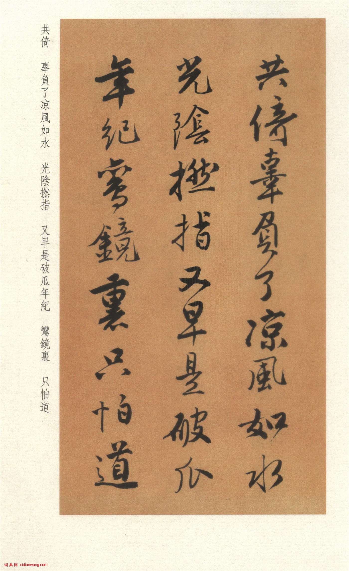 書法欣賞魏晉書法唐朝書法宋朝書法元朝書法明朝書法清朝書法近現代書法字典網>> 歷代書法>> 明朝>> 唐寅行書《自書集賢賓等詞卷》(3)正文 唐寅行書《自書集賢賓等詞卷》(3)作者:唐寅 書體:行書 首 頁 上一頁 1 2 3 4 5 6 7 8 9 10 下一頁 尾 頁唐寅的相關書法作品:唐寅行書《落花詩冊》蘇州市博物館藏本 唐寅行書《臨蘭亭序卷》 唐寅 漫興墨跡 唐寅行書 《秋風紈扇圖題詩》 唐寅行書《七律四首詩卷》 唐寅《行書贈周良溫詩卷》 唐寅行書《千金良夜七言律詩軸》 唐寅·自題《李端端圖》 唐寅行書《跋宋王詵江山疊翠圖》 相關文章:吳熙載篆書《宋武帝與臧燾敕》 (篆書)吳煕載,原名廷颺,字煕載,後因避穆宗載淳諱更字讓之,號晚學居士,江蘇儀征人。他長...王文治《跋虞恭公碑》 (行書)王文治跋《虞恭公碑》。陸謹庭舊藏北宋拓本,有王文治跋,今不知所在。祝允明《七律壽礪庵詩》 (行書)【釋文】西山青擁午橋莊,南紀星輝礪石堂。百歲光儀高里社,四朝聲望播岩廊。須知洞裡...趙孟頫行楷《撫州永安院僧堂記》 (行楷)元代趙孟頫行楷書法《撫州永安院僧堂記》,刻本三希堂法帖。釋文:撫州永安禪院僧堂記...吳熙載《篆書吳均“與朱元思書”四條屏》 (篆書)吳熙載《篆書吳均“與朱元思書”四條屏》(上圖來自《書法》雜誌1980年第三期)【...劉墉行書《天機范水七言聯》 (行書)劉墉《天機范水七言聯》描花絹本行書 131.5×32cm×2 釋文:天機道筦...董其昌·草書張籍七言詩 (草書)【釋文】水北原南野草新,雪消風暖不生塵。城中車馬知無數,能解閒行有幾人。其昌。董...小楷《靈飛經》筆法講解1、平切橫 起筆時帶有一定的速度切入紙面,產生左尖的效果。筆尖繼續向右漸按運行(...唐棣·跋趙孟頫書《赤壁賦》 (行書)【釋文】東坡二賦,松雪要每一書之,敻出諸書之右,故深得晉人書法。晚年行筆圓熟,度...趙佶·蔡行敕卷 (行書)【釋文】敕蔡行。省所上劄子。辭免領殿中省事。具悉。事不久任。難以仰成。職不有總。...