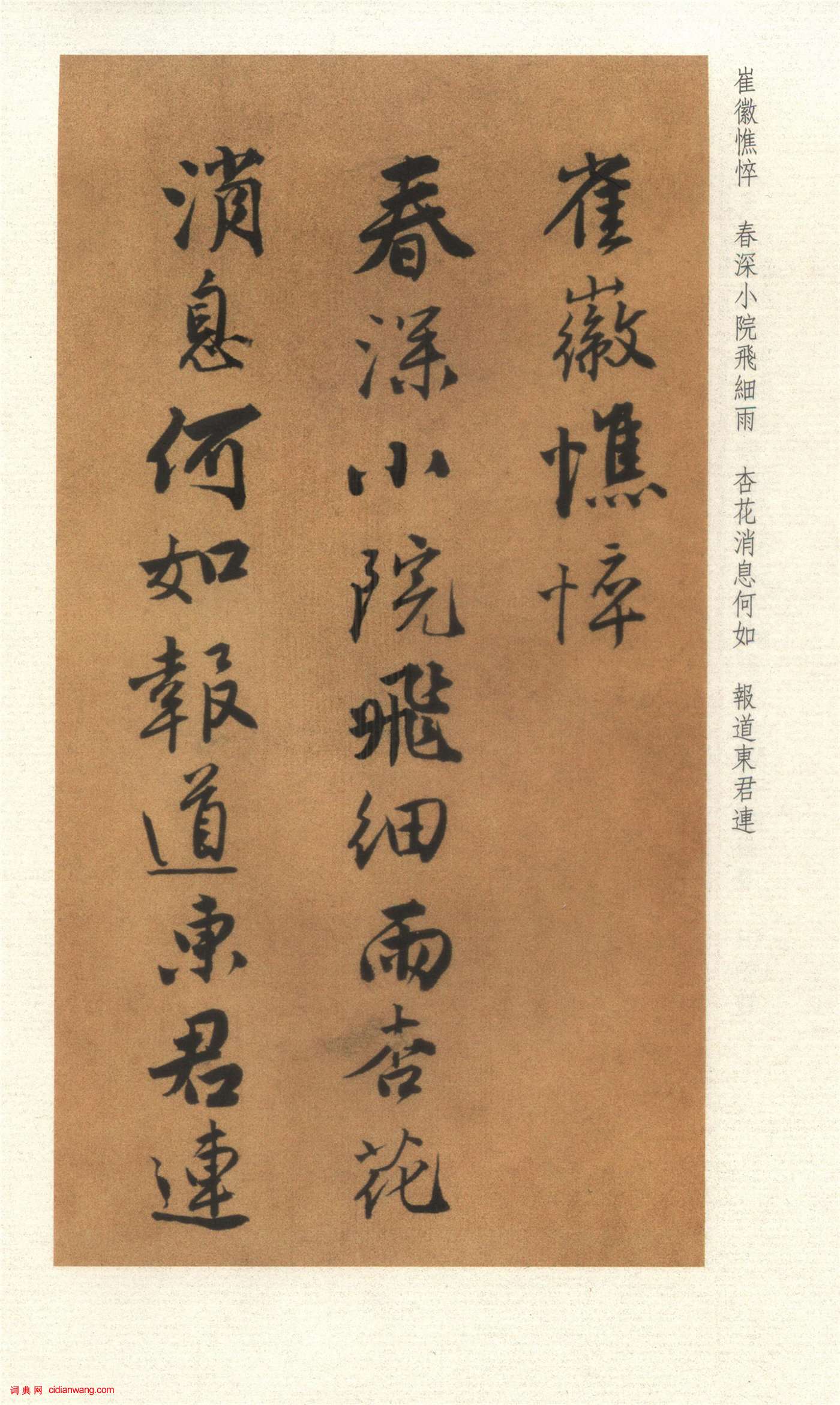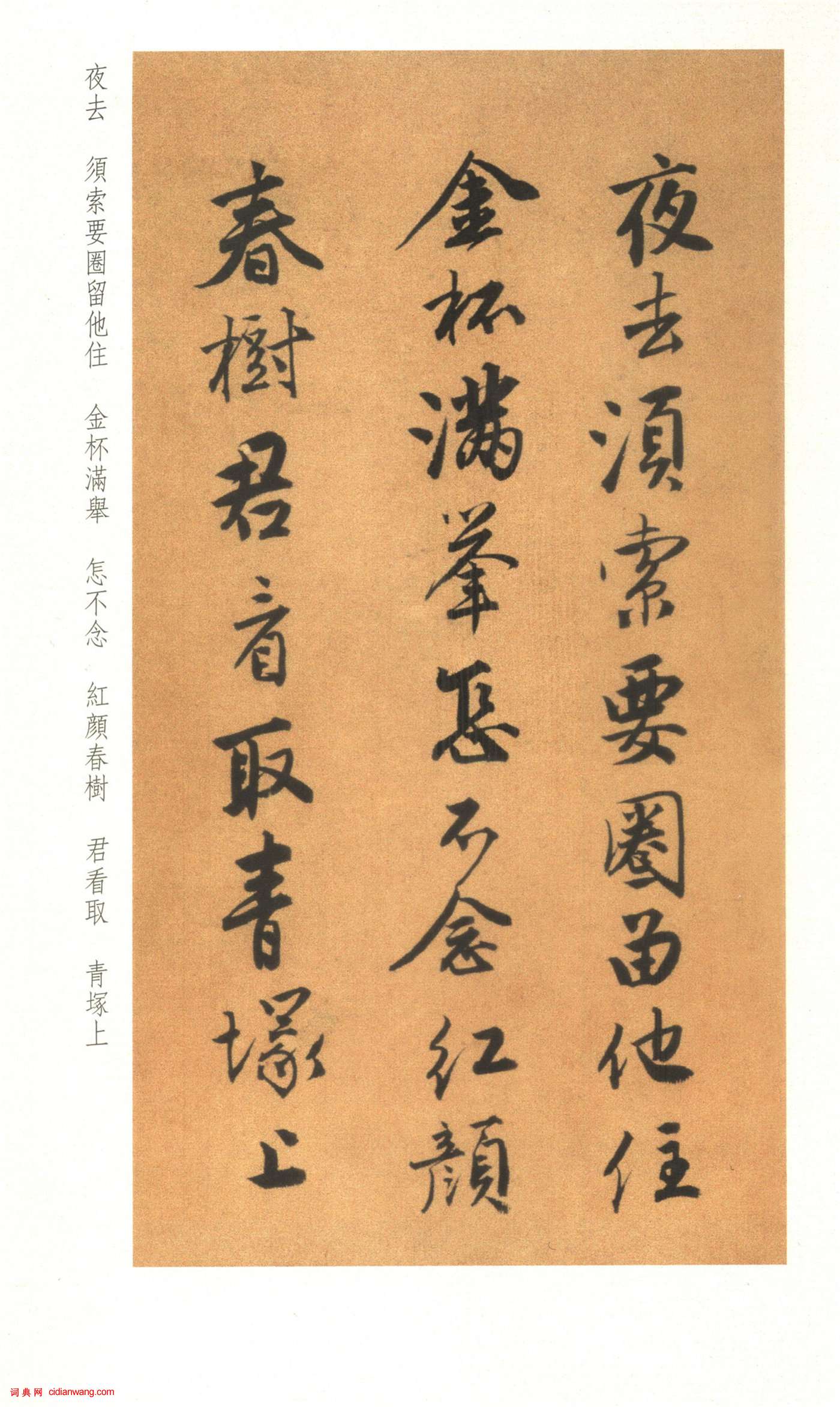 書法欣賞魏晉書法唐朝書法宋朝書法元朝書法明朝書法清朝書法近現代書法字典網>> 歷代書法>> 明朝>> 唐寅行書《自書集賢賓等詞卷》(4)正文 唐寅行書《自書集賢賓等詞卷》(4)作者:唐寅 書體:行書 首 頁 上一頁 1 2 3 4 5 6 7 8 9 10 下一頁 尾 頁唐寅的相關書法作品:唐寅《吳門避暑詩》 唐寅行書 《秋風紈扇圖題詩》 唐寅行書《蜀葵圖扇面》 唐寅行書《尺牘之二》 唐寅《行書七律四首詩卷》 唐寅行書《風木圖卷題詩》 唐寅行書《千金良夜七言律詩軸》 唐寅行書《臨韓熙載夜宴圖題詩》 唐寅《行書七律卷》 相關文章:梁漱溟行書《錄解深密經文句》 (行書)梁漱溟《錄解深密經文句》行書釋文:超過一切尋思境界。尋思但行言說境界。然而勝義不...顧從義·跋米芾《蜀素帖》 (楷書)顧從義跋米芾《蜀素帖》,楷書。顧從義,嘉靖時人,字妝和,號研山,上海人。官中書舍...趙秉文《趙霖昭陵六駿圖題跋》 (行書)【釋文】雒陽趙霖所畫天閑六馬圖觀其筆法圓熟清勁度越儔侶向時曾於梵林精舍覽一賣家寶...蔡卞·唐玄宗鶺鴒頌題跋 (行書)蔡卞《唐玄宗鶺鴒頌題跋》,行書。台北故宮博物院收藏。蔡卞,北宋宰相、書法家。蔡京...范仲淹《邊事帖》 (行書)【釋文】仲淹再拜,知府刑部仁兄:伏爲起居萬福。施鄉曲之惠,占江山之勝,優哉樂乎。...蘇洵《陳元實夜來帖》 (草書)蘇洵《陳元實夜來帖》,約1047(慶曆七年),紙本,34.5×50.9cm。台...李世民草書《屏風帖》 (草書)李世民草書《屏風帖》,宋嘉泰四年(1204)王允初刻於餘杭,元延祐三年(1316...徐枋行書《錄常建五言詩軸》 (行書)徐枋《錄常建五言詩軸》紙本行書 136.6×62.6cm 上海博物館藏 釋文:...高二適行楷《臨唐高宗大唐經功頌頁》 (行楷)高二適《臨唐高宗大唐經功頌頁》行楷 33×38cm 南京求雨山文化名人紀念館(...金農隸書五言詩 (隸書)金農 隸書五言詩 年代不詳 紙本 縱78.6厘米 橫56.7厘米 上海博物館藏 ...