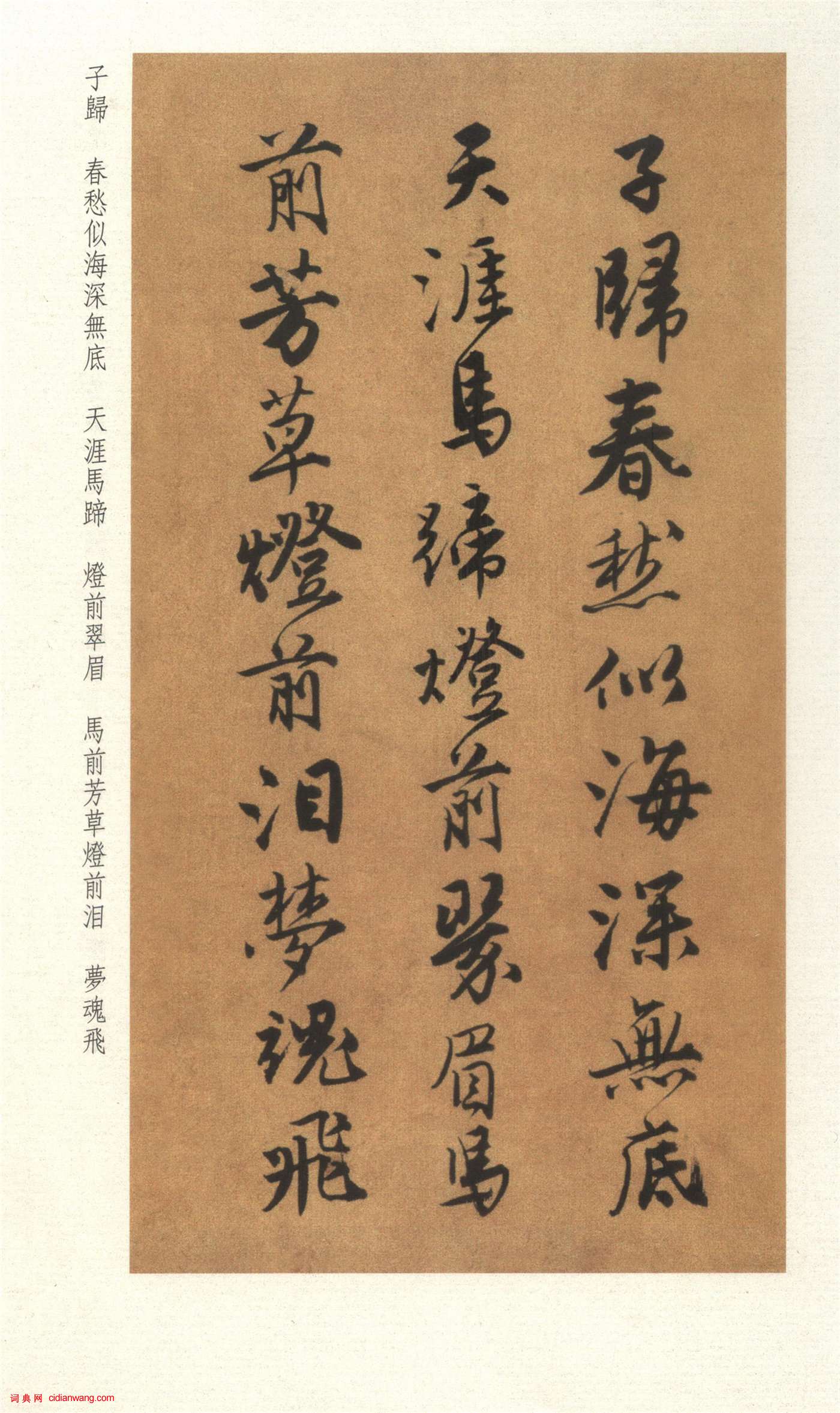 書法欣賞魏晉書法唐朝書法宋朝書法元朝書法明朝書法清朝書法近現代書法字典網>> 歷代書法>> 明朝>> 唐寅行書《自書集賢賓等詞卷》(5)正文 唐寅行書《自書集賢賓等詞卷》(5)作者:唐寅 書體:行書 首 頁 上一頁 1 2 3 4 5 6 7 8 9 10 下一頁 尾 頁唐寅的相關書法作品:唐寅《行書七律四首詩卷》 唐寅行書《風木圖卷題詩》 唐寅行書自題《王蜀宮妓圖》 唐寅行書《七律詩軸》龍頭獨對五千文 唐寅·自題《李端端圖》 唐寅行書自題《墨梅圖》 唐寅行書題《事茗圖卷》 唐寅行書《花下酌酒歌扇面》 唐寅行書《雨花台感昔詩札》 相關文章:沈尹默行書《蘇東坡詩冊》 (行書)沈尹默行書作品欣賞《蘇東坡詩冊》,沈尹默68歲書贈李天馬書法冊頁一套16P。趙孟頫行書《陋室銘》 (行書)趙孟頫行書長卷欣賞《陋室銘》紙本,縱49、橫131厘米;共19行,計86字。款署...秦檜《深心帖》 (行草)秦檜《深心帖》出自《楞嚴經》第三卷,在該卷中,佛祖釋迦摩尼的十大弟子之一,阿難,...倪瓚小楷《致慎獨有道詩札》 (小楷)倪瓚《致慎獨有道詩札》1362年 縱28.4厘米 橫52.8厘米 台北故宮博物院...車萬育《行書集杜之一詩軸》 (行書)車萬育《行書集杜之一詩軸》紙本 224×75cm 釋文:興來猶杖屨,自適固其常...朱熹行書《城南唱和詩卷》 (行書)朱熹《城南唱和詩卷》 紙本,手卷 31.5×275.5厘米。北京故宮博物院藏朱...華世奎楷書《清故文學任先生墓表》 (楷書)華世奎楷書欣賞《清故文學任先生墓表》華世奎(1863~1941)字啟臣,號璧臣。...傅山草書《王維輞川閒居贈裴秀才迪詩》軸 (草書)傅山《王維輞川閒居贈裴秀才迪詩》軸 綾本 186.5x52cm 重慶三峽博物館藏...文徵明行書《心經》 (行書)《心經》,全稱為《般若波羅蜜多心經》,是漢傳佛經中最短的一部,因其旨意精微且便於...高鳳翰《行書張在辛赤壁賦書畫卷引首》 (行書)高鳳翰《行書張在辛赤壁賦書畫卷引首》 紙本行書 縱23cm 山西省博物院藏釋文:...