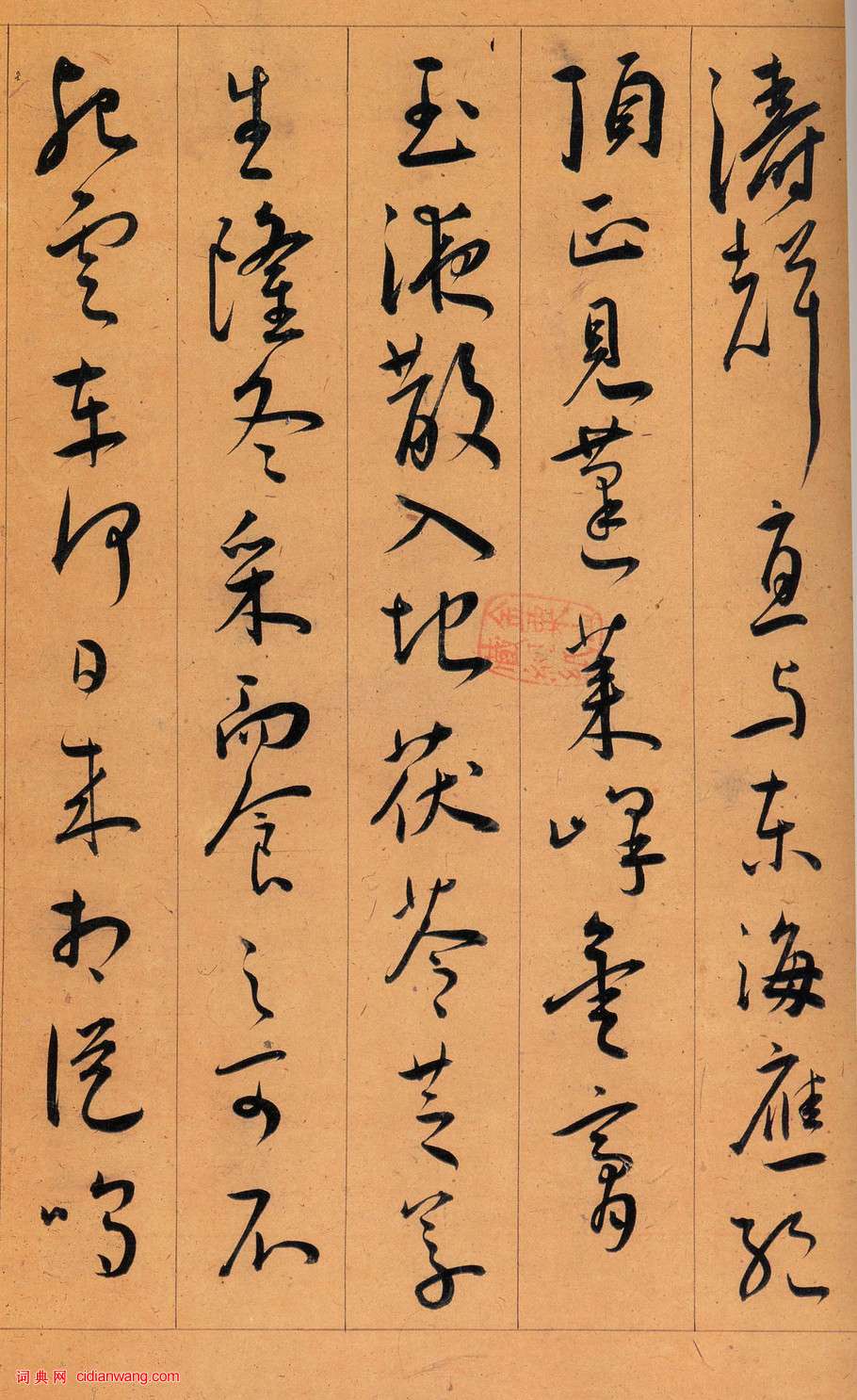 書法欣賞魏晉書法唐朝書法宋朝書法元朝書法明朝書法清朝書法近現代書法字典網>> 歷代書法>> 明朝>> 王寵草書《自書五憶歌》(4)正文 王寵草書《自書五憶歌》(4)作者:王寵 書體:草書 首 頁 上一頁 1 2 3 4 5 6 下一頁 尾 頁王寵的相關書法作品:王寵草書《李白古風詩卷》 王寵《草書五言詩》軸 王寵《行書西苑詩》卷 王寵小楷《送陳子齡會試詩》 王寵行書《致南村書》 王寵行草《名山時訪道五言詩》扇面 王寵《自書游包山詩》草書手卷 王寵《草書崔顥詩》軸 王寵草書《自書五憶歌》 相關文章:蘇轍《晚來帖》 (行書)蘇轍《晚來帖》,約1089年(元祐四年),行書,縱24.9厘米,橫19.8厘米,...黃侃《隸書難披獨倚七言聯》 (隸書)黃侃《隸書難披獨倚七言聯》 湖北省博物館藏 釋文:難披梗莽尋千古,獨倚青冥望八荒...笪重光·嘉州集 (楷書)笪重光小楷《嘉州集》,崑崙堂美術館藏。錄五言律二十四首。《嘉州集》是唐代詩人岑參...蔡襄《持書帖》 (行楷)蔡襄《持書帖》,紙本,行楷,縱27.2厘米,橫57.4厘米,故宮博物院藏。此帖是...倪瓚楷書《呈履道先生詩札》 (楷書)倪瓚《呈履道先生詩札》,紙本,楷書, 香港中文大學藏 釋文:(七)瓚□,月末得■...趙孟頫行書《陋室銘》 (行書)趙孟頫行書長卷欣賞《陋室銘》紙本,縱49、橫131厘米;共19行,計86字。款署...文徵明《行書阿房宮賦》 冊頁 (行書)文徵明(1470~1559) 行書阿房宮賦 紙本 冊頁(三十六開,跋二開) 15...黃道周行書《鵬鳩豈有五言詩軸》 (行書)黃道周《鵬鳩豈有五言詩軸》 行書 1642年釋文:鵬鳩豈有常,各自喻適意。當其控...李邕楷書《端州石室記》 (楷書)李邕《端州石室記》 原石 李邕《端州石室記》 崇恩藏本 《端州石...長沙窯詩文壺《上有東流水》 (行草)行草——青釉褐彩“上有東流水”詩文壺(局部) 殘高20.8厘米 底徑11厘米...