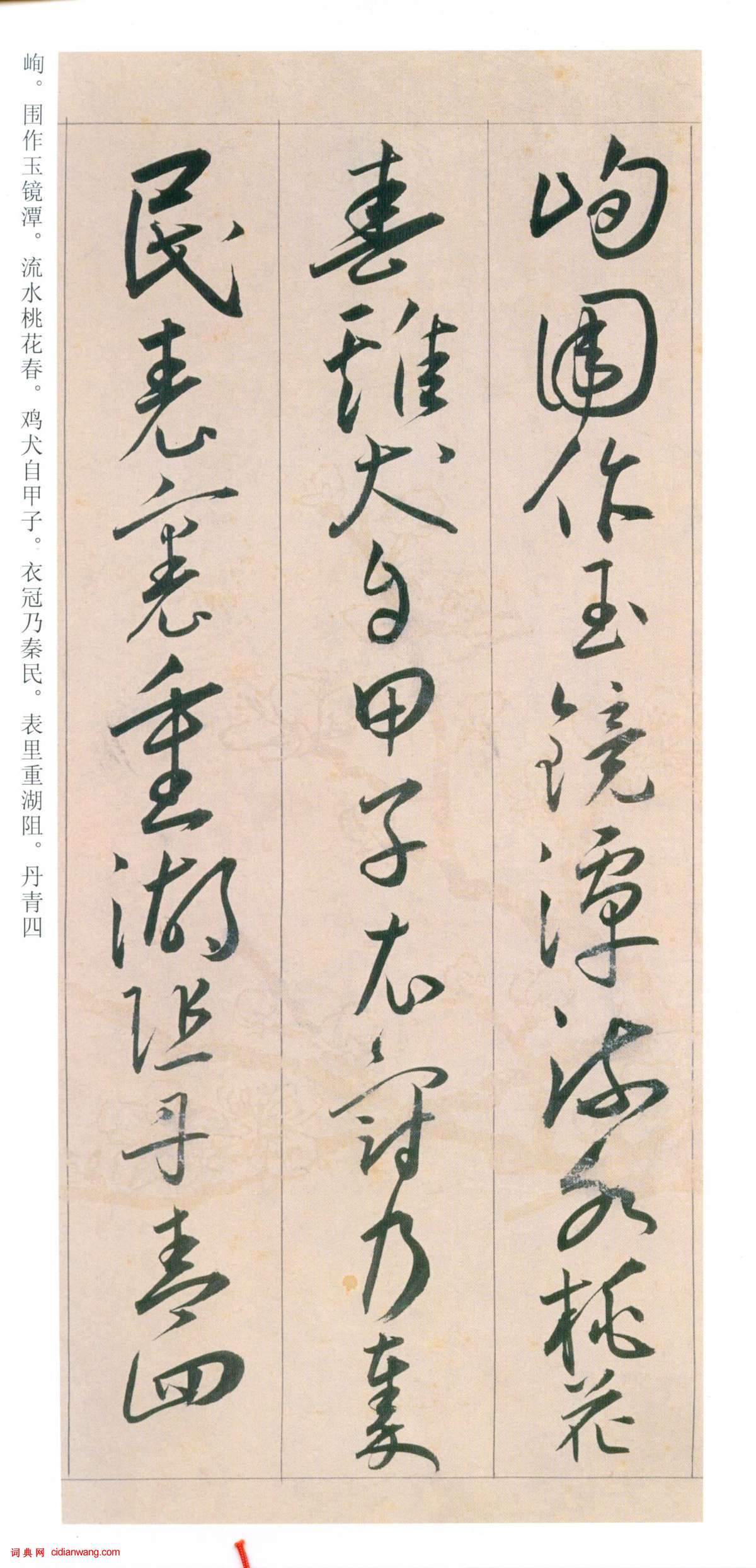 資源下載魏晉書法唐朝書法宋朝書法元朝書法明朝書法清朝書法近現代書法字典網>> 歷代書法>> 明朝>> 王寵《自書游包山詩》草書手卷(10)正文 王寵《自書游包山詩》草書手卷(10)作者:王寵 書體:草書 首 頁 上一頁 6 7 8 9 10 11 12 13 14 15 下一頁 尾 頁王寵的相關書法作品:王寵《自書游包山詩》草書手卷 王寵·自書雜詩二種 王寵行草《五言律詩》卷 王寵草書《李白詩卷》 王寵行書跋《管道升書卷》 王寵小楷《游包山集》 王寵小楷《送陳子齡會試詩》 王寵行書《致南村書》 王寵小楷《謝康樂詩》 相關文章:王獻之《鴨頭丸帖》 (行草)【釋文】鴨頭丸,故不佳。明當必集,當與君相見。 鴨頭丸帖,行草,摹本。王獻之書。...老北京胡同里的對聯,書法了得老北京胡同里的對聯,書法了得!這些對聯,與北京文化一起,成為了一道古雅的風景線。...釋擔當·春來草書軸 (草書)【釋文】春來無日不狂游,折得梅花插滿頭。一來為僧天教我,而今七十當風流。擔當。釋...趙孟頫《行書十札卷》拓本 (行書)趙孟頫是元代書壇當之無愧的領袖。趙孟頫的《行書十札卷》十通尺牘合裝卷,為趙孟頫致...王寵小楷《游包山集》 (小楷)明代神韻小楷:王寵小楷《游包山集》,最適合鋼筆臨寫王寵,初字履仁,後改字履吉,號...唐寅行書《臨蘭亭序卷》 (行書)唐寅《臨蘭亭序卷》紙本行書 29.6×84.6cm, 遼寧省博物館藏...倪瓚小楷《致慎獨有道詩札》 (小楷)倪瓚《致慎獨有道詩札》1362年 縱28.4厘米 橫52.8厘米 台北故宮博物院...張瑞圖《行書李夢陽七絕詩軸》 (行書)張瑞圖《行書李夢陽七絕詩軸》絹本行書 148×46cm 南通博物苑藏釋文:壇官...唐高宗李治行書《李勣碑》 (行書)唐高宗《李勣碑》,全稱《贈太尉英貞武公李勣碑》,鐫於儀鳳二年(677年)在陝西醴...張雨行書《自書雜詩冊》 (行書)至正五年(1345) 張雨《自書雜詩冊》粉花箋 23.7×15.3cm×24...