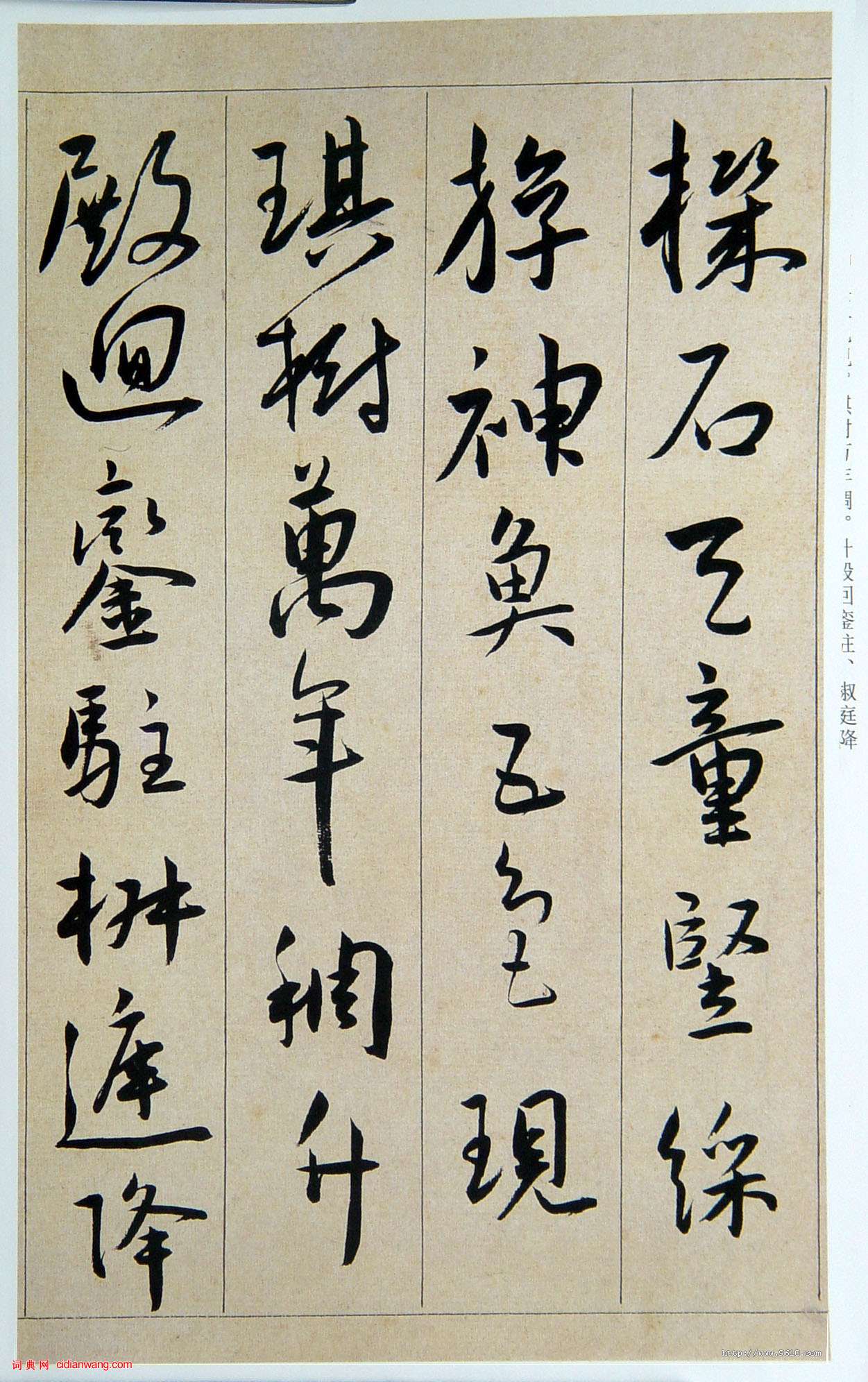 該卷《西苑詩》,取法獻之、虞世南筆意,但善於摻拙,做到了巧而不媚,流暢而不浮滑;用筆清勁秀雅,溫潤含蓄,不激不厲,技巧動作的表達非常細膩、精巧,變化極其微妙;結體安排精巧流走,法度、情性俱在,有些地方還流露章草遺韻,更顯高古蘊藉;整個氣息落拓不羈、遒勁蕭疏,在沉靜、收斂之中反而更具一種內在的張力。誠如清黎惟敬所讚頌的那樣:“晉人真跡,世所罕見。所傳者,仿書耳。諸體混淆,若出一手,不辨其為誰也。近世吳人王履古氏獨能追蹤大令,蕭散俊逸,復出流輩,雖不見晉人書,知其為絕藝也。”