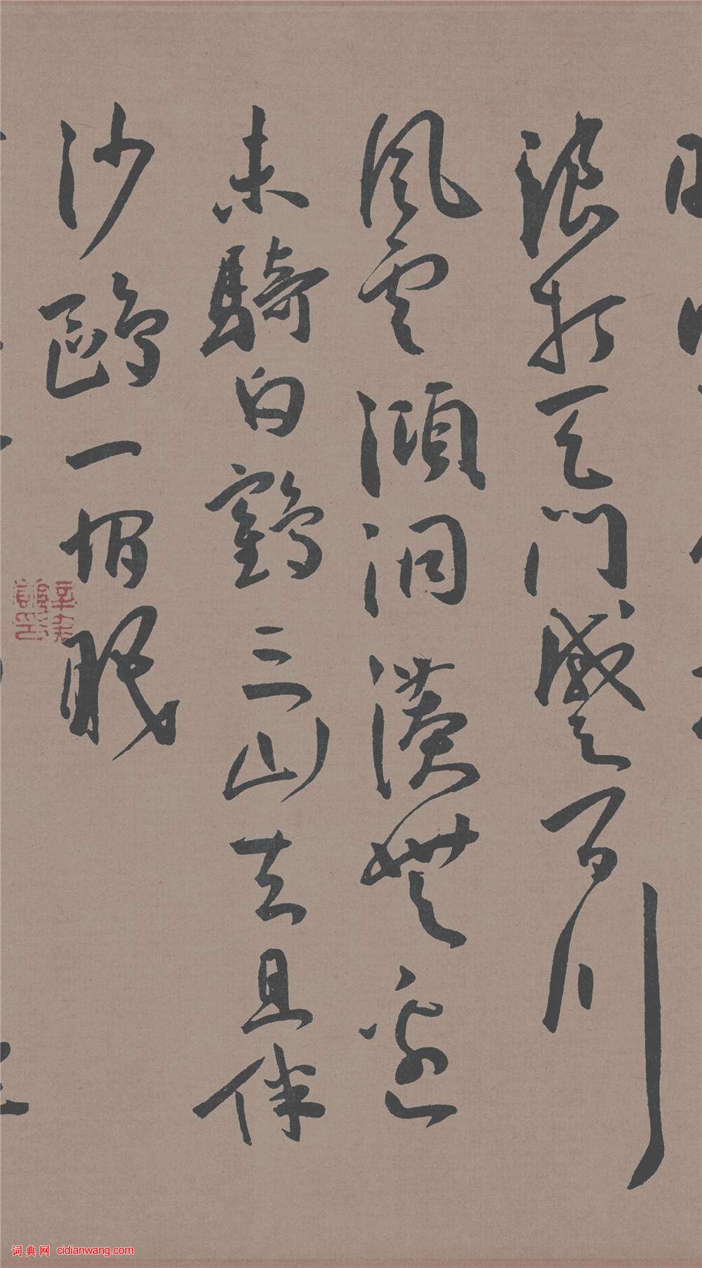 書法欣賞魏晉書法唐朝書法宋朝書法元朝書法明朝書法清朝書法近現代書法字典網>> 歷代書法>> 明朝>> 王寵草書《石湖八絕詩卷》(9)正文 王寵草書《石湖八絕詩卷》(9)作者:王寵 書體:草書 首 頁 上一頁 1 2 3 4 5 6 7 8 9 王寵的相關書法作品:王寵草書《李白古風詩卷》 王寵《小楷詩稿》 王寵草書《雜書帖》 王寵草書《五言律詩》 王寵草書《自書五憶歌》 王寵小楷《謝康樂詩》 王寵小楷《為海濱先生書五言詩扇》 王寵草書《送李願歸盤谷序》 王寵《行草扇面》冊頁 相關文章:蔡襄·門屏帖 (行書)【釋文】襄顓詣門屏,陳謝推官呂君。九月日,襄上謁。《門屏帖》尺牘,紙本,縱27....鄂君啟節銘文 (篆體)鄂君啟節釋文:一九五七年出土於安微省壽縣,是戰國中期楚國器,青銅製成,形似剖開的...歐陽詢行書《張翰思鱸帖》 (行書)《張翰帖》也稱《季鷹帖》、《張翰思鱸帖》,屬於原《史事帖》的一部分,是歐陽詢僅存...陳奕禧行書《七絕立軸》 (行書)陳奕禧《行書七絕立軸》紙本行書 103×37cm 湖北省博物館藏釋文:我憶南湖...傅山《草書詩軸》 (草書)傅山《草書詩軸》 187.8×51.4cm 蘇州博物館藏釋文:儒仙難易葛翁籌,...吳寬行楷《唐詩三首扇面》 (行楷)吳寬《唐詩三首扇面》紙本行楷書 成化二十二年(1486)上海博物館藏釋文:王粲...申時行行草《七律詩扇》 (行草)申時行《行草七律詩扇》 19.4×55cm 蘇州博物館藏釋文: 百壺雙屐趁梅花...王蒙《夢梅花詩卷》 (行草)王蒙《夢梅花詩卷》,行草,北京故宮博物院藏。這是一件最能反映王蒙書法風格的作品。...迺賢·南城詠古詩帖 (行楷)元 迺賢《南城詠古詩帖》,紙本,行楷,縱23.5cm,橫156.6cm。迺賢雖為...歐陽詢《卜商讀書帖》 (行楷)【釋文】卜商讀書畢,見孔子。孔子問焉,何爲於書。商曰,書之論事,昭昭如日月之代明...