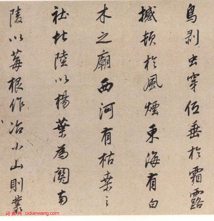 書法欣賞魏晉書法唐朝書法宋朝書法元朝書法明朝書法清朝書法近現代書法字典網>> 歷代書法>> 明朝>> 董其昌行書《臨褚遂良枯樹賦》(2)正文 董其昌行書《臨褚遂良枯樹賦》(2)作者:董其昌 書體:行書 首 頁 上一頁 1 2 3 4 5 6 7 8 下一頁 尾 頁董其昌的相關書法作品:董其昌行書《為丁雲鵬賀壽詩》 董其昌·梁武帝書評卷 董其昌行書《龍神感應記》 董其昌《臨米芾行書長卷》 董其昌行書《大唐中興頌》 董其昌·跋《張旭古詩四帖》 董其昌臨《淳化閣帖》 董其昌·跋米友仁《瀟湘奇觀圖》 董其昌·題李公麟《擊球圖》 相關文章:蘇軾《治平帖》 (行書)【釋文】軾啟:久別思念不忘,遠想體中佳勝,法眷各無恙。佛閣必已成就,焚修不易。數...翁同龢行書《玉軸雕鞍六言聯》 (行書)翁同龢《行書玉軸雕鞍六言聯》紙本行書 200×47.5cm×2 天津博物館藏...北魏楷書《刁遵墓誌》 (楷書)《刁遵墓誌》全稱《雒州刺史刁惠公墓志銘》,刻於北魏熙平二年(公元517年)。高約...朱勝非《杜門帖》 (行楷)【釋文】勝非頓首.勝非憂患餘生,杜門養□人事曠絕。獨蒙記存,垂問曲折,區區又以刻...米芾行書《離騷經》 (行書)米芾書《離騷經》系行楷,原墨跡為紙本冊頁。凡二十六開,每開二幅,每幅五行,每行字...小楷《靈飛經》筆法講解1、平切橫 起筆時帶有一定的速度切入紙面,產生左尖的效果。筆尖繼續向右漸按運行(...徐無聞《草書丈雪上人句》 (草書)徐無聞《草書丈雪上人句》 98×51cm 私人收藏釋文:萬里江湖一葉身,來時逢...張瑞圖《行書古洞五律詩軸》 (行書)張瑞圖《行書古洞五律詩軸》紙本金箋行書 112.2×65.6cm 浙江省博物館...蘇軾行楷《祭黃幾道文卷》 (行楷)《祭黃幾道文卷》行楷書 縱31.6cm 橫121.7cm 1087年 上海博物館...西漢篆書瓦當書法欣賞 (篆書)瓦當,俗稱瓦頭,是施於房椽的瓦的垂下以遮檔椽頭的部分。瓦當在秦漢最盛,除花紋外,...