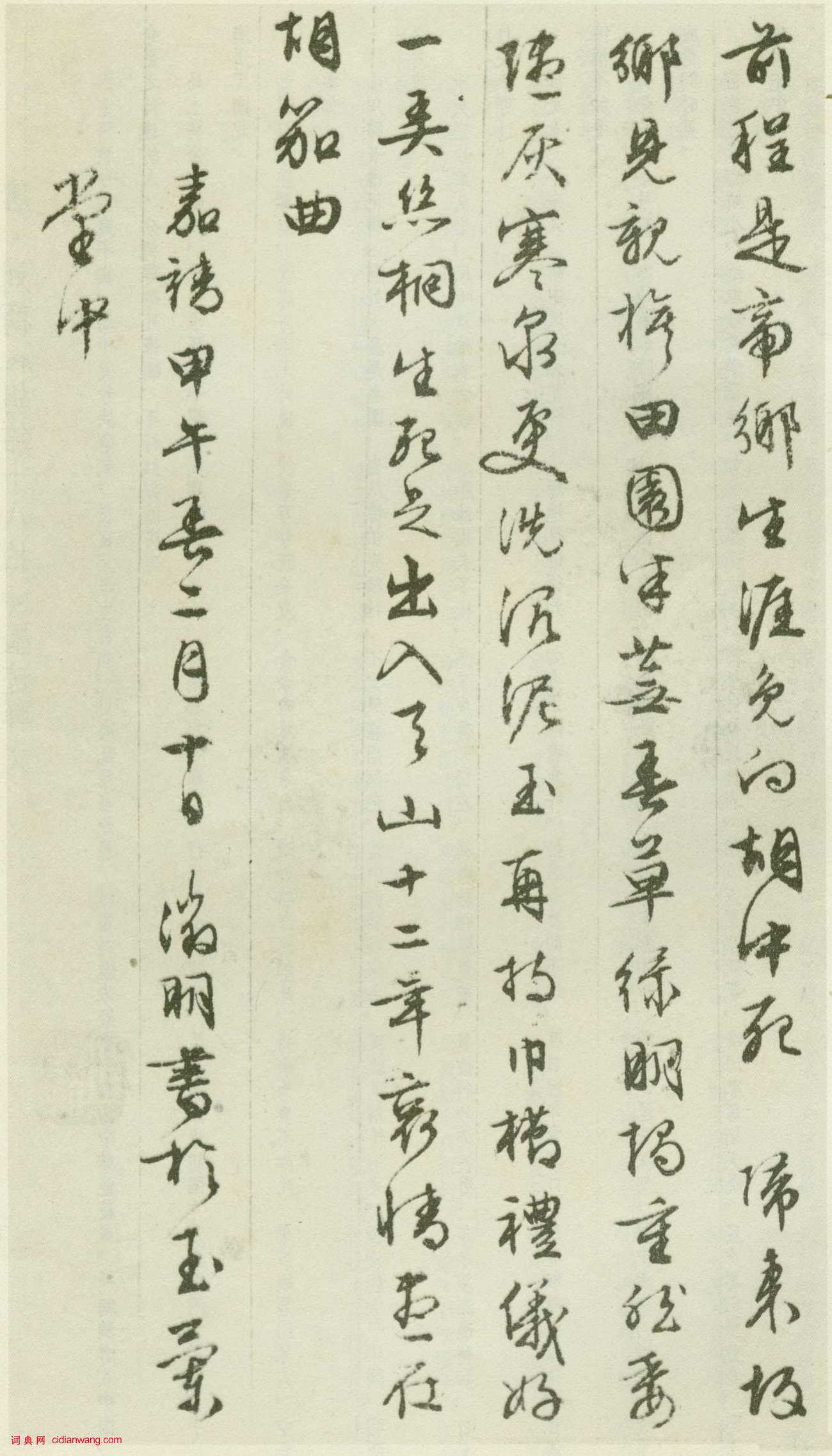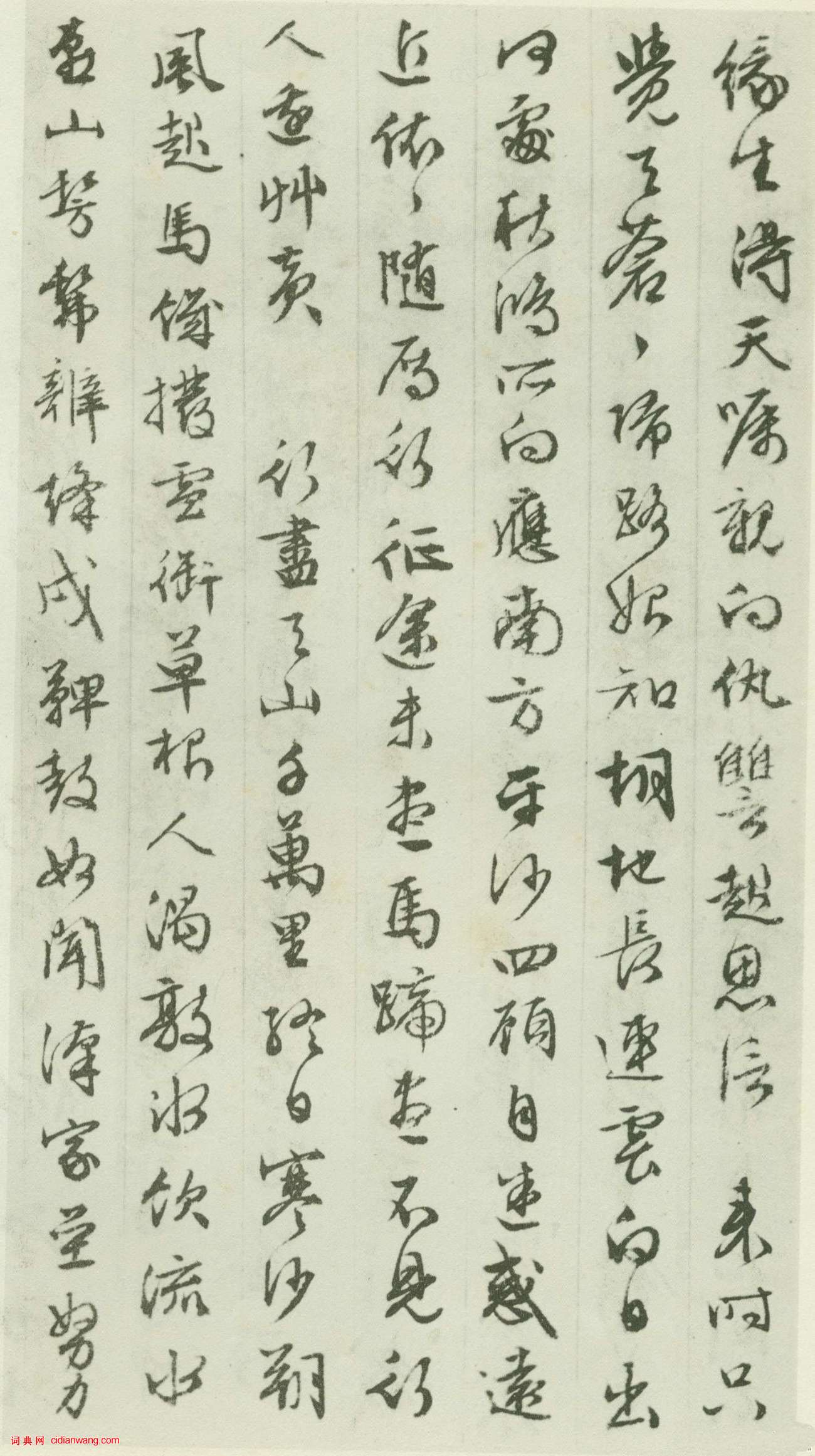資源下載魏晉書法唐朝書法宋朝書法元朝書法明朝書法清朝書法近現代書法字典網>> 歷代書法>> 明朝>> 文徵明行草《胡笳十八拍》(5)正文 文徵明行草《胡笳十八拍》(5)作者:文徵明 書體:行草 首 頁 上一頁 1 2 3 4 5文徵明的相關書法作品:文徵明《草書詩卷》 文徵明行書《心經》 文徵明行書《致華氏手札冊》 文徵明行草《城居煩暑詞翰冊》 文徵明行書《李令君登君山二首》 文徵明小楷《前後赤壁賦》拓本 文徵明行書五律立軸 文徵明小楷《太上老君說常清淨經》 文徵明草書《湖光披素練詩卷》 相關文章:秦觀行書《摩詰輞川圖跋》 (行書)秦觀,字少游,一字太虛,號淮海居士,揚州高郵(今屬江蘇)人。 元豐年間進士。曾任...董其昌·題黃公望《富春山居圖》 (行書)董其昌題黃公望《富春山居圖》,行書。富春山居圖:黃道周楷書《贈龍尹詩扇》 (楷書)黃道周《贈龍尹詩扇》金箋 楷書 15×48.9cm 弘光元年(1645)北京故...包世臣《節臨張旭秋深帖》 (行書)包世臣《節臨張旭秋深帖》紙本行書 167.5×89.5cm 揚州市博物館【資料...柳公權楷書《神策軍碑》 (楷書)全稱《皇帝巡幸左神策軍紀聖德碑並序》,柳公權書。唐會昌三年(公元843年)立,原...裴休《定慧禪師碑》 (楷書)他叫裴休,比唐朝最後一位大書法家柳公權小13歲。他們曾經聯手留下一塊書法刻碑。此...張拭《嚴陵帖》 (行書)【釋文】拭自來嚴陵,與令婿伯恭遊從。每聞起居狀,及論議□詳,用以自尉。茲承□禦祥...沈尹默行書《澹靜廬詩剩》 (行書)此詩作者鎮海金磷叟,系晚清地方行政小縣令,詩中多描寫農村光景,風土人情,詞藻清新...東漢隸書《劉平國刻石》 (隸書)《劉平國刻石》拓片此刻全稱《龜茲左將軍劉平國摩崖》,又名《劉平國治路頌》、《劉平...東漢篆書碑刻《袁安碑》 (篆書)《袁安碑》東漢篆書碑刻。全稱《漢司徒袁安碑》。東漢永元四年立。在今河南境內,碑石...