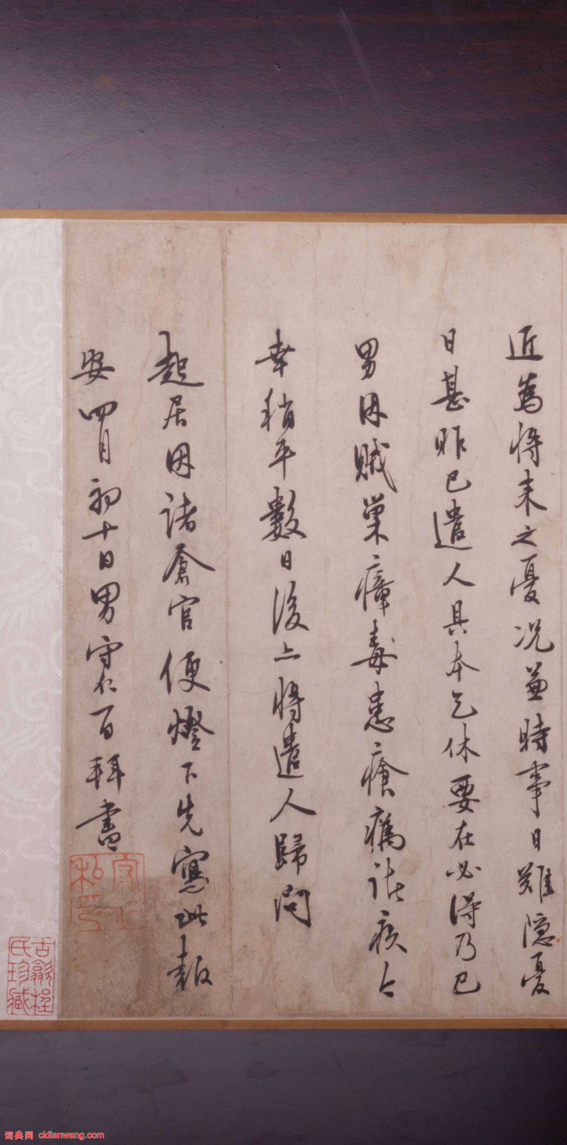 書法欣賞魏晉書法唐朝書法宋朝書法元朝書法明朝書法清朝書法近現代書法字典網>> 歷代書法>> 明朝>> 王守仁行書《自贛州上海日翁手札》(2)正文 王守仁行書《自贛州上海日翁手札》(2)作者:王守仁 書體:行書 首 頁 上一頁 1 2 王守仁的相關書法作品:王守仁草書 《龍江留別詩》 王守仁行書《奉壽西岡羅老先生詩》 王守仁行書《自贛州上海日翁手札》 王守仁草書《象祠記》 王守仁《行書詠良知四絕示馮子仁卷》 王守仁·銅陵觀鐵船歌 王守仁行草《與鄭邦瑞尺牘》 王守仁《楷書客座私祝冊》 王守仁草書《回軍上杭詩》 相關文章:楊守敬行書《節錄白居易“廬山草堂記”軸》 (行書)楊守敬《行書節錄白居易“廬山草堂記”軸》紙本行書 244×117cm 189...顏真卿行書《讓憲部尚書表》 (行書)《顏真卿三表帖》作於至德二載(公元757年)四月。其中《讓憲部尚書表》為唐肅宗授...瘞鶴銘 (楷書)《瘞鶴銘》殘片焦山摩崖石刻《瘞鶴銘》刻於南朝·梁(傳)天監十三年(514年),...周天球《行書陋室銘軸》 (行書)周天球《行書陋室銘軸》 紙本 縱130.1厘米,橫31.5厘米 上海博物館藏此軸...東漢篆書《少室石闕銘》 (篆書)東漢篆書碑刻。石碑篆額題《少室神道之闕》。延光二年立於嵩山,是“嵩山三闕”之一。...東漢隸書《曹全碑》 (隸書)《曹全碑》全稱《漢郃陽令曹全碑》,碑高253厘米,寬123厘米,隸書,字共20行...大慧宗杲·尺牘 (行書)大慧宗杲尺牘,紙本,行書,38.0×65.5cm。日本東京國立博物館藏(松平直...魏了翁·提刑提舉帖 (行草)【釋文】提刑提舉親家尊眷丈,所□昭代親友兄弟間,鹹以□音來赴,謂久痢所致。謂八月...蕭嫻《篆書花及柳逢七言聯》 (篆書)蕭嫻《篆書花及柳逢七言聯》紙本 137×22cm×2 江蘇省美術館藏 釋文:...黃庭堅行草《制嬰香方帖》 (行草)黃庭堅《制嬰香方帖》 紙本 縱28.7厘米 橫37.7厘米 台北故宮博物院藏釋文...