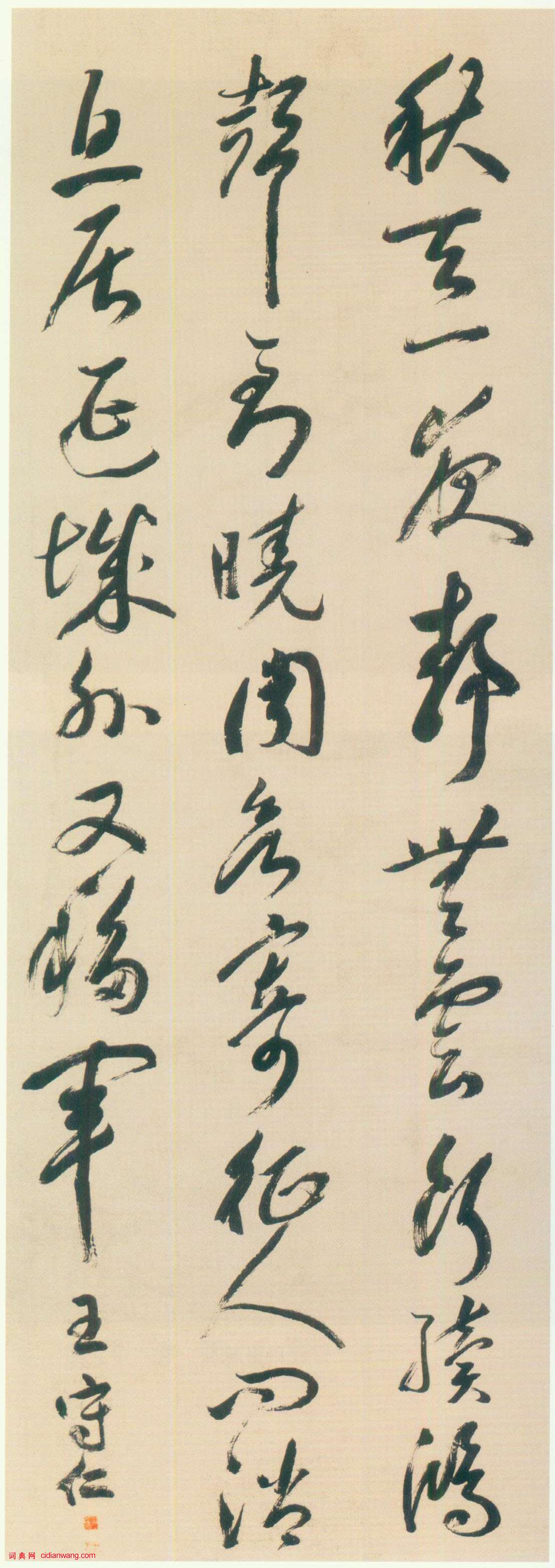 王守仁《行書唐人秋閨思一首詩軸》紙本行書 212×72.5cm 上海朵雲軒藏