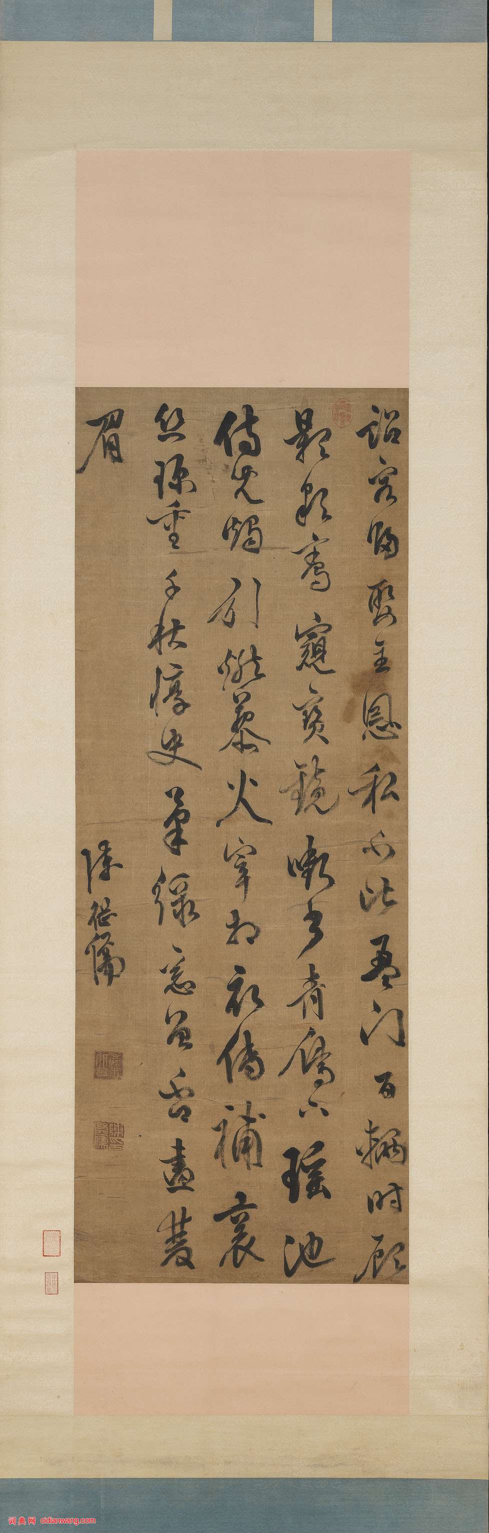 陳繼儒《行書自書詩軸》綾本行書 130.1×48.6cm 台北故宮博物院藏