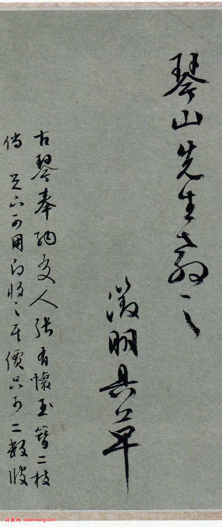 書法欣賞魏晉書法唐朝書法宋朝書法元朝書法明朝書法清朝書法近現代書法字典網>> 歷代書法>> 明朝>> 文徵明《行書致琴山先生札》(3)正文 文徵明《行書致琴山先生札》(3)作者:文徵明 書體:行書 首 頁 上一頁 1 2 3 全文文徵明的相關書法作品:文徵明《點閘帖》 文徵明行書《太液池詩》軸 文徵明行書《雜花詩十二首》 文徵明行書《游西苑詩》兩幅 文徵明行草《胡笳十八拍》 文徵明《行書午門朝見詩》 文徵明行書《自書五言詩扇》 文徵明行書《北山移文》 文徵明小楷《致四叔公、五叔公札》 相關文章:張祖翼隸書《文章懷抱五言聯》 (隸書)張祖翼《隸書文章懷抱五言聯》紙本隸書 133.5×31.5cm×2 青島市博...王羲之小楷《孝女曹娥碑》 (小楷)東漢元嘉元年(公元151年),上虞縣令度尚,將孝女曹娥投江救父事跡,上報朝廷,旌...王鐸《行書嵩縣詩軸》 (行書)王鐸《行書嵩縣詩軸》,紙本,縱163厘米,橫48厘米 崑崙堂藏 《行書...胡適書法作品欣賞 (行楷)胡適,著名學者、詩人,原名嗣穈,學名洪騂,字希疆,後改名胡適,字適之。 安徽徽...岳珂·跋《唐摹王羲之一門書翰卷》 (楷書)岳珂跋《唐摹王羲之一門書翰卷》(即《唐摹萬歲通天帖》),遼寧省博物館藏。陸游·懷成都十韻詩 (行草)【釋文】放翁五十猶豪縱,錦城一覺繁華夢。竹葉春醪碧玉壺,桃花駿馬青絲鞚。鬥雞南市...虞集·跋趙孟頫《鵲華秋色圖》 (行書)虞集跋趙孟頫《鵲華秋色圖》,現藏台北故宮博物院。張伯英《行楷散此偶有八言聯》 (行楷)張伯英《行楷“散此偶有”八言聯》 刊於《書法》2011年第7期 ...黃道周楷書《自作詩六首詩冊》 (楷書)黃道周《自作詩六首詩冊》紙本 楷書 26.8×32.2cm ×3 崇禎五年壬...毛奇齡《行書為奉峨侄孫作七律詩軸》 (行書)毛奇齡《行書為奉峨侄孫作七律詩軸》紙本行書 126×54.5cm 上海博物館藏...