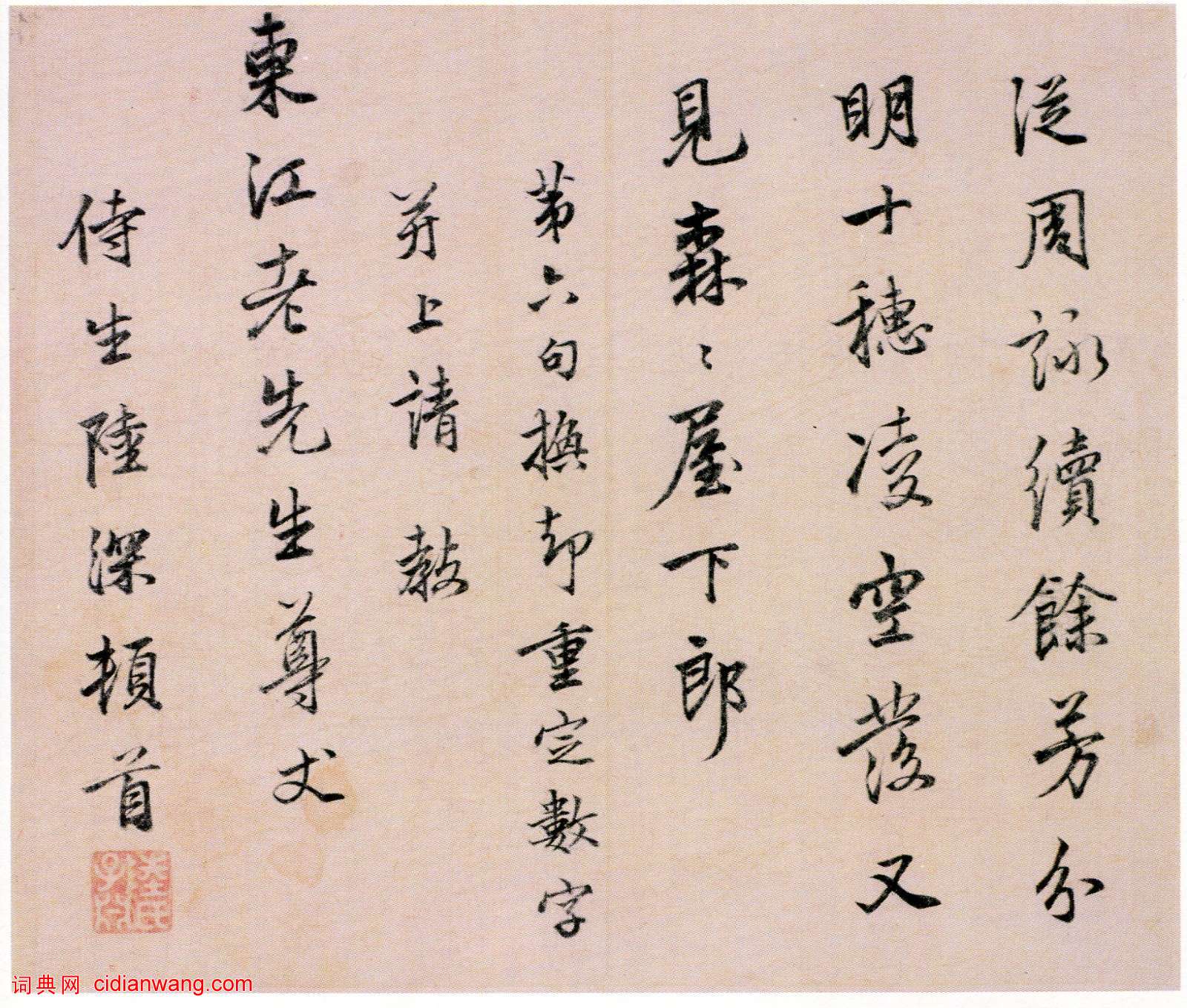 第六句換卻重定數字,並上請教東江老先生尊丈。侍生陸深頓首。