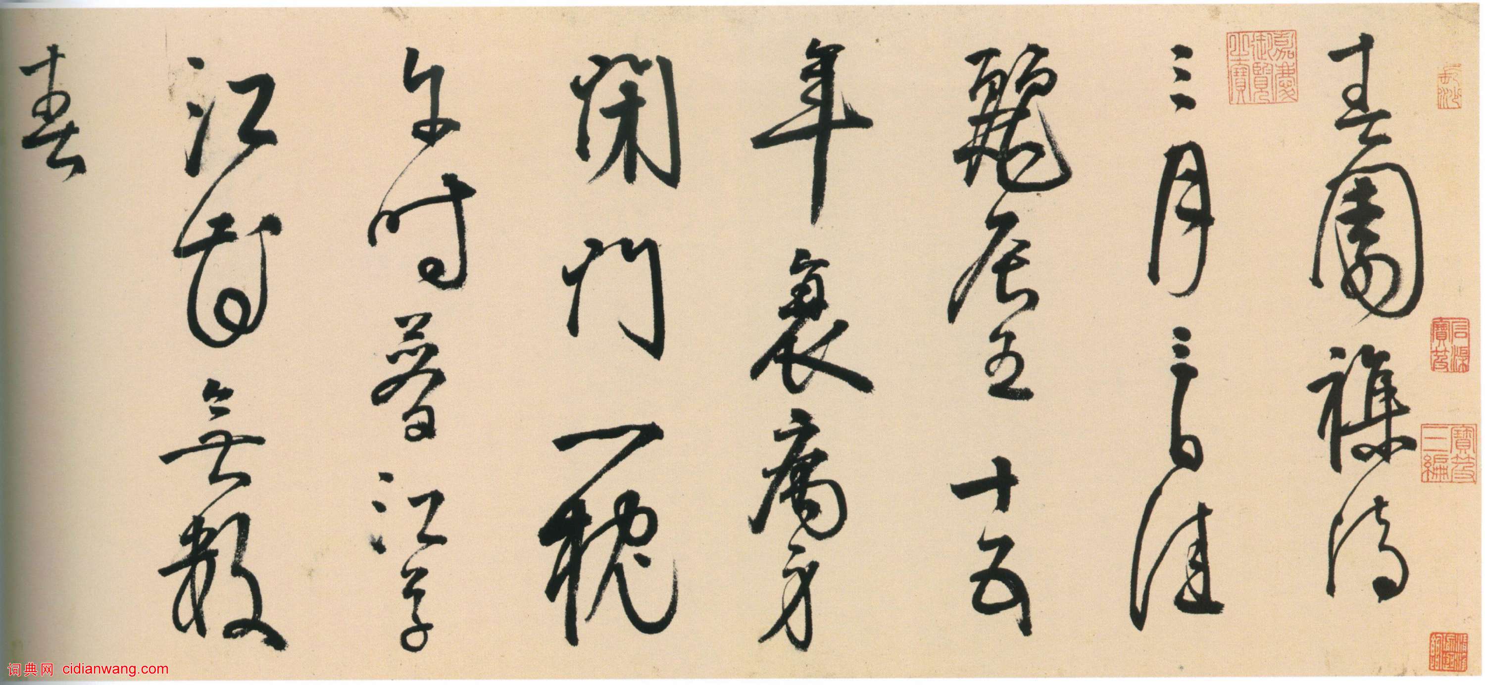 說明:本幅書自作《春園雜詩》六首,贈與陳鎬。書於正德己巳(1509),時李東陽 六十三歲,屬晚年佳構。