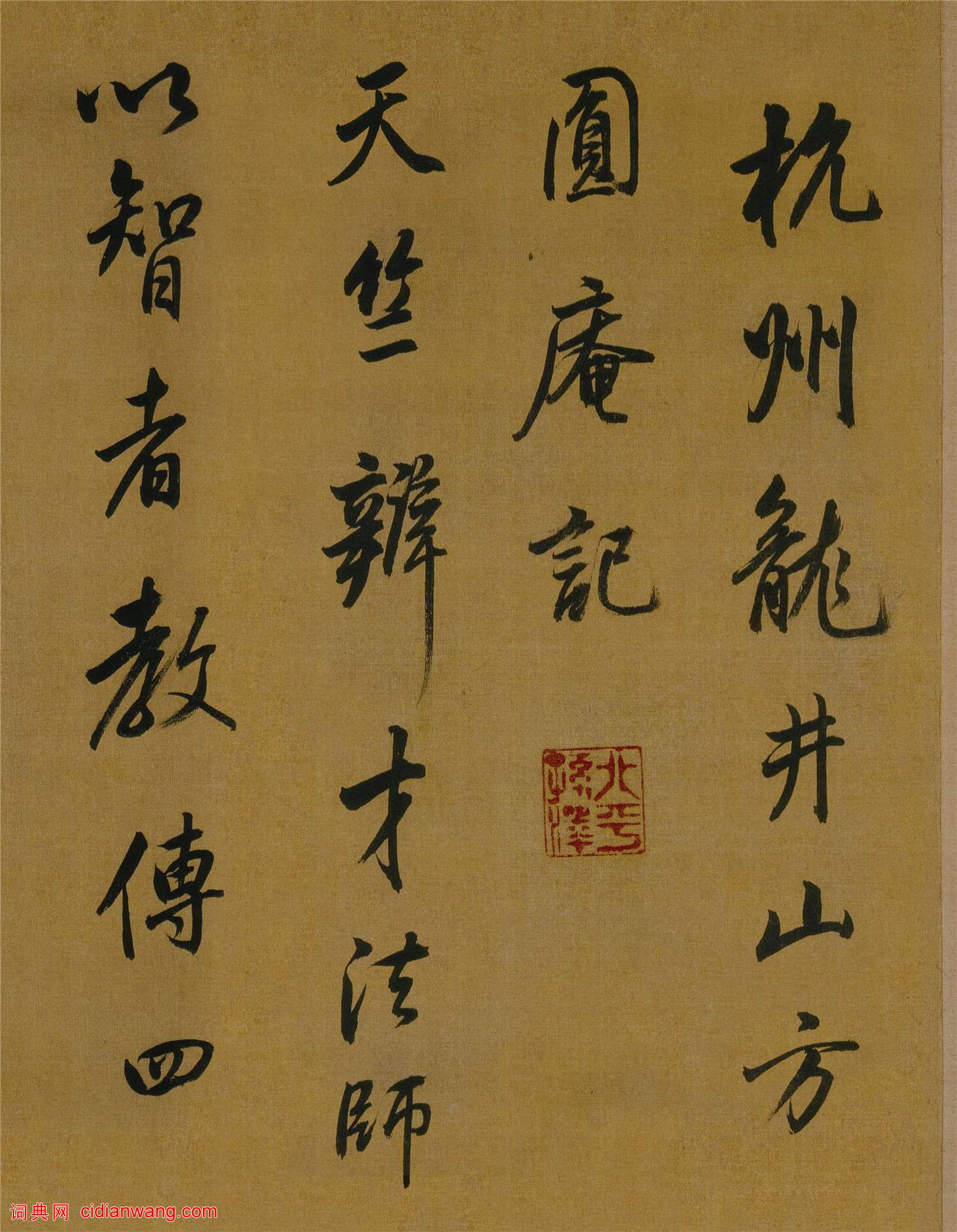 《方圓庵記》米芾書於北宋元豊六年(1083)是專為當時天竺高僧辯才法師主持杭州龍井山方圓庵所作。墨跡已失,此書為董其昌臨本,堪稱書法神品。為董其昌濃墨少見之作。