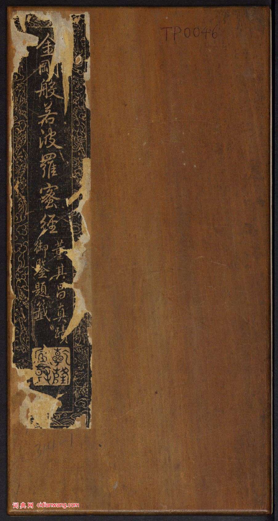 金剛般若波羅蜜經,董其昌書;乾隆題詩並書字。浙江陳淮, 乾隆45年(1780)清拓本經摺裝,墨紙尺寸:27.7x14.2cm。書籤題名下有“董其昌真蹟御鑒題籤”字樣。