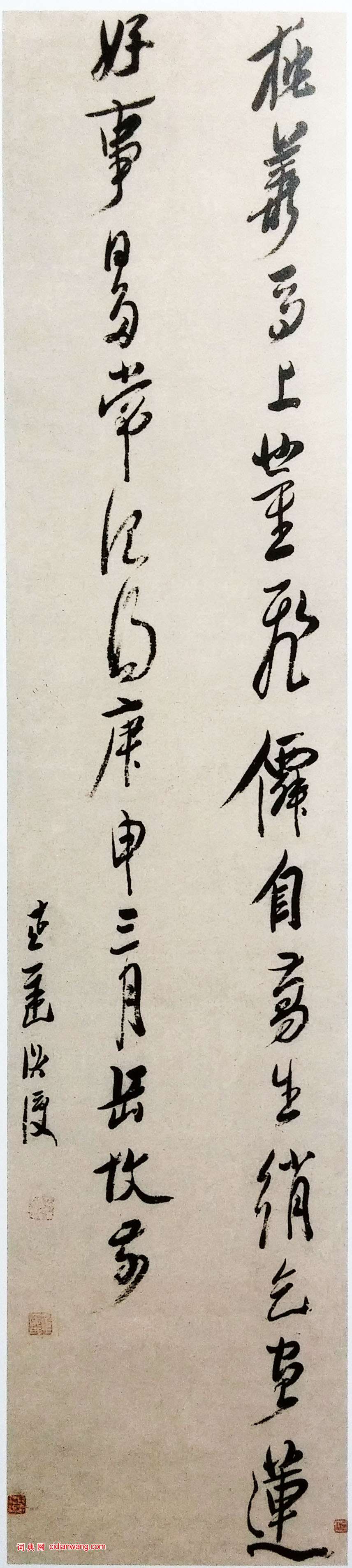陳洪綬《行書贈伎董飛仙詩一首》軸 紙本 133×30cm 約順治七年(1650)台北故宮博物院藏