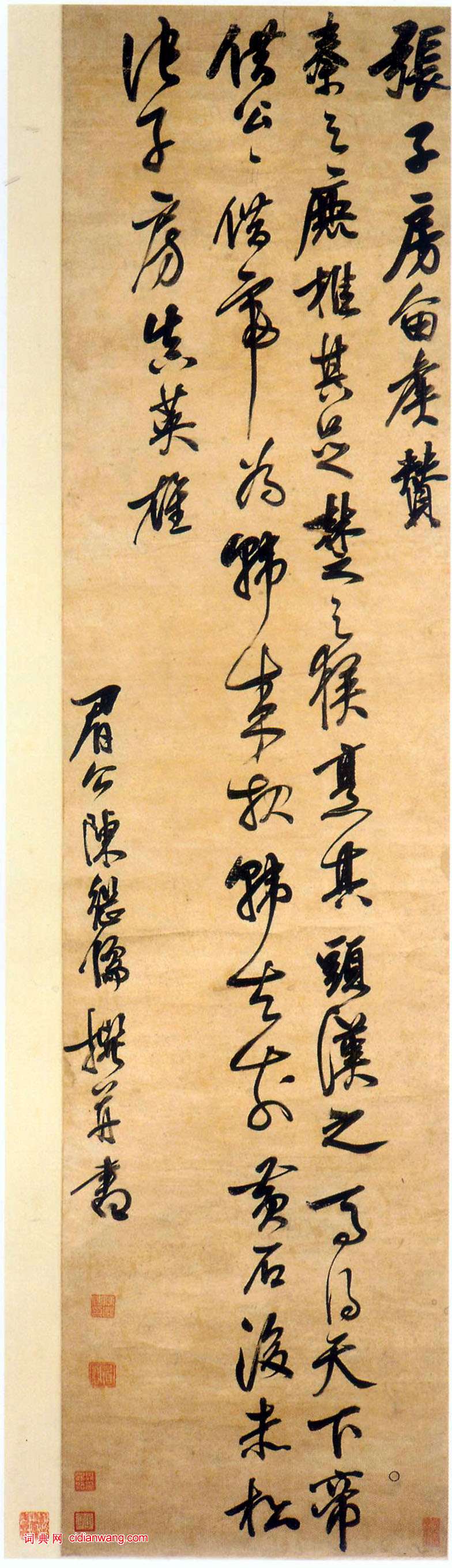 書法欣賞魏晉書法唐朝書法宋朝書法元朝書法明朝書法清朝書法近現代書法字典網>> 歷代書法>> 明朝>> 陳繼儒行書《張子房留侯贊軸》正文 陳繼儒行書《張子房留侯贊軸》作者:陳繼儒 書體:行書 陳繼儒《張子房留侯贊軸》金箋 行書 35.7×147.7 cm 南京博物院藏此軸行筆流逸,字形體勢多出於米芾。資料來源:上海古籍出版社《南京博物院珍藏系列——書法》 2018-5-1 8:27:17 陳繼儒的相關書法作品:陳繼儒行書《張子房留侯贊軸》 陳繼儒《行書自書詩軸》 陳繼儒《行書阿含經句軸》 陳繼儒《行書五言詩》扇面 陳繼儒《行書風中柳詞軸》 陳繼儒《行書霜華颯然五言詩》 陳繼儒·跋《宋拓黃庭經》 陳繼儒《行書七言詩軸》 陳繼儒·跋《唐玄序集王羲之書金剛經》 相關文章:孫過庭書譜集字草書《千字文》 (草書)《千字文》根據史書記載,是南朝梁武帝在位時期(502 —549 年)編成的,其編...楊維楨行書《跋馬遠畫商山四皓圖卷》 (行書)楊維楨 《跋馬遠畫商山四皓圖卷》 高37.7cm 藏處不詳 年代不詳釋文:商山...李斯篆書《嶧山碑》,明拓鄭文寶摹刻長安本 (篆書)嶧山碑.李斯撰.明拓宋鄭文寶摹刻長安本,又碑後附有鄭文寶跋,碑字雄渾溫雅,無一筆...宋克《閒居詩》 (草書)宋克《閒居詩》,草書。《閒居詩》釋文:負郭堂成水竹列,平生筆硯是鋤犁;性田所喜無...陸恭·跋褚遂良《孟法師碑》 (楷書)陸恭跋褚遂良《孟法師碑》,楷書。林藻行書《深慰帖》 (行書)林藻《深慰帖》翻刻版原拓 年代不詳 林藻生卒年不詳,字緯乾,小名遂奴,福建...趙孟頫·後赤壁賦 (行書)趙孟頫書後赤壁賦,紙本,冊裝,共11開21頁,每頁縱:27.2厘米,橫:11.1...祝允明·跋米芾《蜀素帖》 (行書)祝允明跋米芾《蜀素帖》,行書。現存台灣故宮博物院。祝允明跋米芾《蜀素帖》釋文:南...東漢隸書《曹全碑》 (隸書)《曹全碑》全稱《漢郃陽令曹全碑》,碑高253厘米,寬123厘米,隸書,字共20行...米友仁·題《遠岫晴雲圖》 (行書)【釋文】紹興甲寅,元夕前一日,自新昌泛舟,來赴朝參,居臨安七寶山,戲作小卷付與稟...