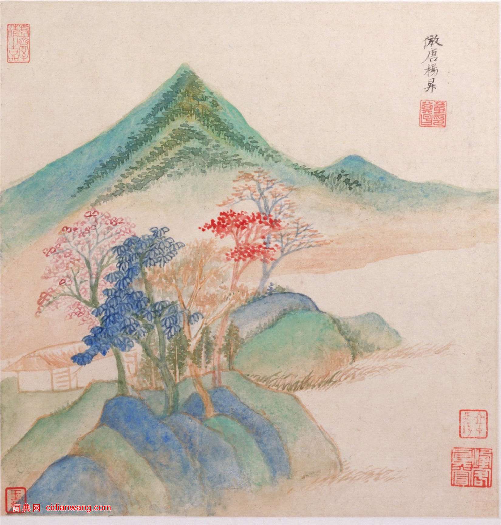 董其昌《仿古山水畫冊》,紙本設色,共八幀,單頁縱26.3厘米,橫25.5厘米,現藏於北京故宮博物院。