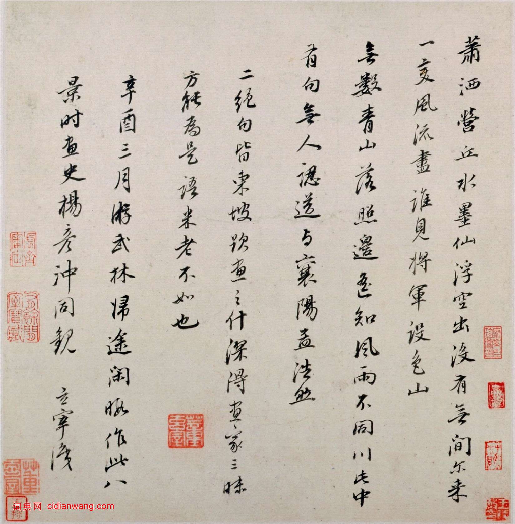 又題記:“辛酉三月游武林,歸途閒暇作此八景。時畫史楊彥沖同觀。玄宰識。