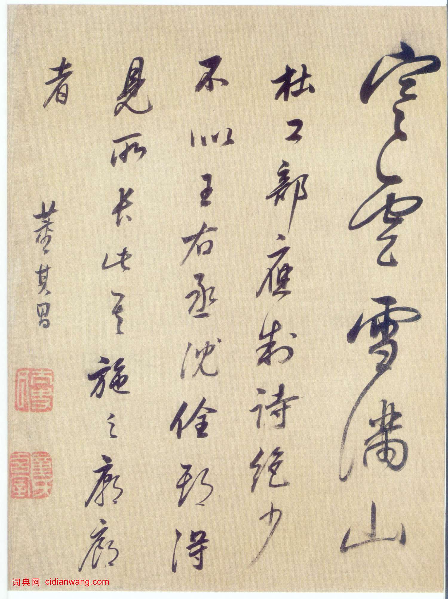 書法欣賞魏晉書法唐朝書法宋朝書法元朝書法明朝書法清朝書法近現代書法字典網>> 歷代書法>> 明朝>> 董其昌行書《杜甫醉歌行詩》正文 董其昌行書《杜甫醉歌行詩》作者:董其昌 書體:行書 董其昌《杜甫醉歌行詩》行書,絹本, 橫301cm 高31cm 。 崑山崑崙堂美術館藏 絹本圖片選自《書法》雜誌2003第5期 2018-5-17 9:44:24 董其昌的相關書法作品:董其昌行書《墨禪軒說》 董其昌《書陸暢驚雪詩軸》 董其昌·論書並書杜甫詩卷 董其昌·儲光羲《田家雜興》 董其昌小楷《金剛般若波羅蜜經》 董其昌《樂毅論》 董其昌楷書《東方先生畫贊碑》卷 董其昌行書《臨蘇軾寒食帖》 董其昌《王維五絕詩》 相關文章:伊秉綬隸書《毋自欺齋橫額》 (隸書)伊秉綬《隸書“毋自欺齋”橫額》紙本水墨 45.5×193cm 1815年 深圳...王易簡小楷《跋保母帖》 (小楷)(宋)王易簡小楷《跋保母帖》。故宮博物院藏。王易簡(約公元1279年前後在世),...李邕楷書《靈岩寺頌並序碑》墨拓 (楷書)李邕《靈岩寺頌並序碑》墨拓 濟南圖書館藏此為濟南圖書館所藏已割裱成冊的拓本,拓本...八大山人臨《興福寺半截碑》 (行楷)我們總說起書法味道,說再多,都得看實例。今天給大家帶來八大山人行楷臨《興福寺半截...張瑞圖行書《廣陵三月七絕詩軸》 (行書)張瑞圖《行書廣陵三月七絕詩軸》紙本行書 189×65.5cm 山西省博物館藏釋...蘇軾行書《新歲展慶帖》 (行書)蘇軾《新歲展慶帖》 書於1081年(元豐四年)紙本,行書,前帖縱30.2cm,橫...趙孟頫·心經冊頁 (行書)趙孟頫《心經》冊頁裝,3開。第1開前1開,是白描觀音大士像。第3開後第1開,是白...文徵明小楷《摩訶般若波羅蜜多心經》 (小楷)文徵明小楷書法《摩訶般若波羅蜜多心經》嘉靖二十一年壬寅(1542),文徵明時年七...文徵明行書《雪後早朝詩軸》 (行書)文徵明行書雪後早朝詩軸 紙本 縱150.5 橫65.4厘米 青島市博物館藏。資料...陶宗儀《隸書題元馬琬秋林釣艇圖 》 (隸書)陶宗儀《隸書題元馬琬秋林釣艇圖》 28×25.4cm 紙本 台北故宮博物院藏...
