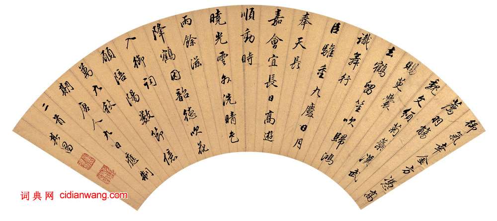 董其昌 行書扇面《唐人九日應制二首》 水墨金箋 15.6×50cm