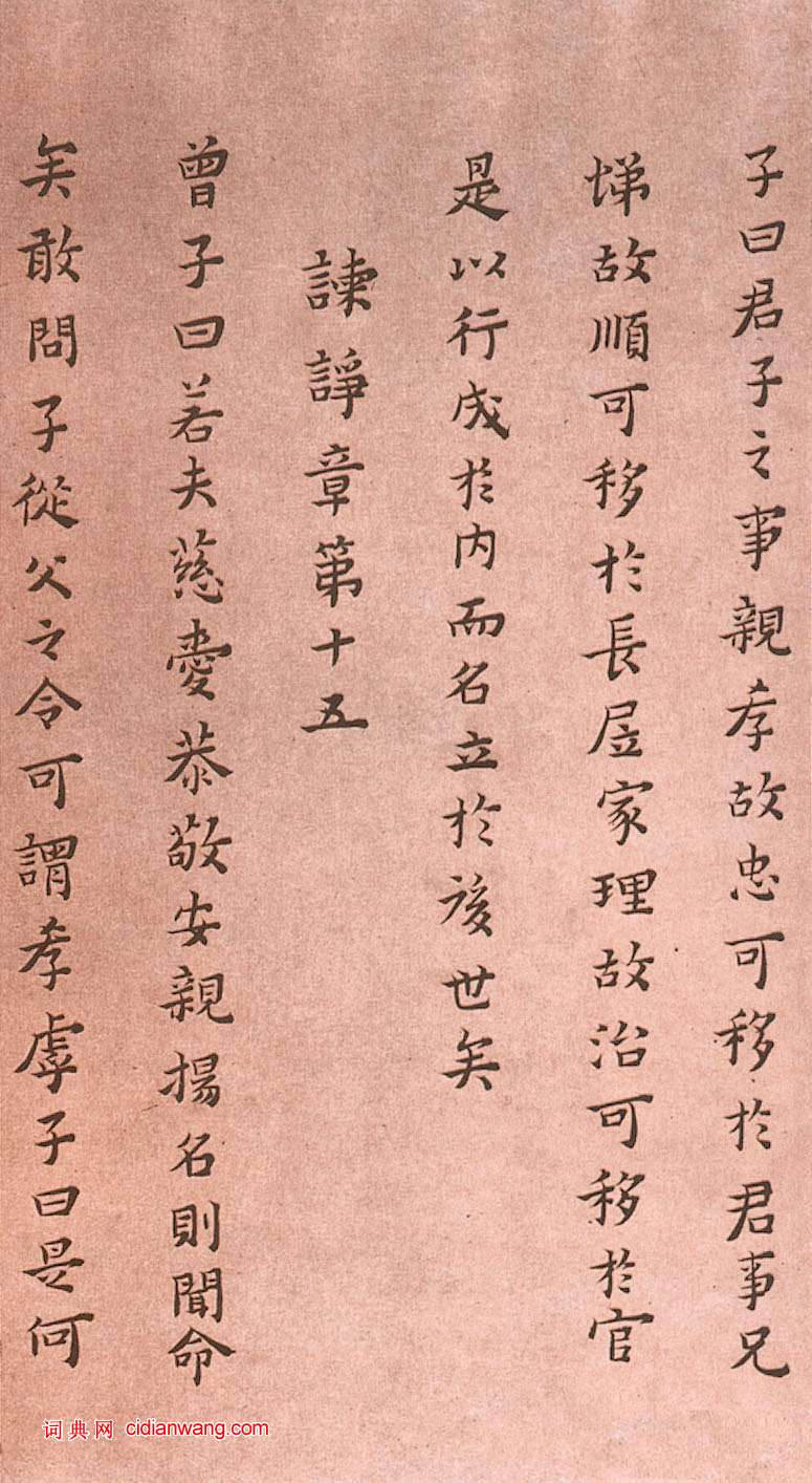 資源下載魏晉書法唐朝書法宋朝書法元朝書法明朝書法清朝書法近現代書法字典網>> 歷代書法>> 明朝>> 黃道周小楷《孝經定本冊》(7)正文 黃道周小楷《孝經定本冊》(7)作者:黃道周 書體:小楷 首 頁 上一頁 1 2 3 4 5 6 7 8 下一頁 尾 頁 全文2018-6-5 20:28:19 黃道周的相關書法作品:黃道周行書《請假得歸途次偶作詩軸》 黃道周行草《大滌山中贈孟閬庵詩軸》 黃道周行草《讀倪鴻寶疏五律詩軸》 黃道周楷書《自作詩六首詩冊》 黃道周行草《進神宗實錄有作詩軸》 黃道周小楷《孝經定本冊》 黃道周蔡玉卿小楷《書法合卷》 黃道周行書《示同學文軸》 黃道周小楷《孝經定本冊》之二 相關文章:鄭簠《隸書五言詩》 (隸書)鄭簠《隸書五言詩》 香港藝術館虛白齋藏釋文:仙宮雲箔卷,露出玉簾鉤。清光無所...林散之行草《酒逢禮愛五言聯句》 (行草)林散之《酒逢禮愛五言聯句》紙本 1980年作 釋文:酒逢名士飲,禮愛野人真。 款...王羲之小楷《東方曼倩祠頌》 (小楷)王羲之小楷《東方曼倩祠頌》,選自《晉唐楷帖十一種》。故宮博物院藏。東方曼倩即東方...鄧散木《五體書正氣歌》 (五體)鄧散木《五體書正氣歌》 上海書畫出版社 出版林散之《楷書自作詩示秋水》 (楷書)林散之《楷書自作詩示秋水》 20×30cm 李秋水藏釋文:稼穡艱難筆代耕,百花...陳孚恩《行書八言聯》 (行書)陳孚恩《行書八言聯》灑金紙本 164×37.5 cm×2 釋文:芳草有情雁落...虞世南楷書集字唐詩《虞世南楷書集唐詩》是(2010年4月1日)西泠印社出版社出版的圖書。帖中的範字...車萬育《行書七言律詩軸》 (行書)車萬育《行書七言律詩軸》絹本 204 ×50cm 台北何創時書法藝術基金會藏釋...楊法《隸書四言聯軸》 (隸書)楊法《隸書四言聯軸》 來源不詳釋文:閉戶自精,開卷獨得蘇軾行書《令子帖》 (行書)蘇軾《令子帖》 書於紹元年(1094)。紙本。行書,尺牘一則。凡4行,計50字。...