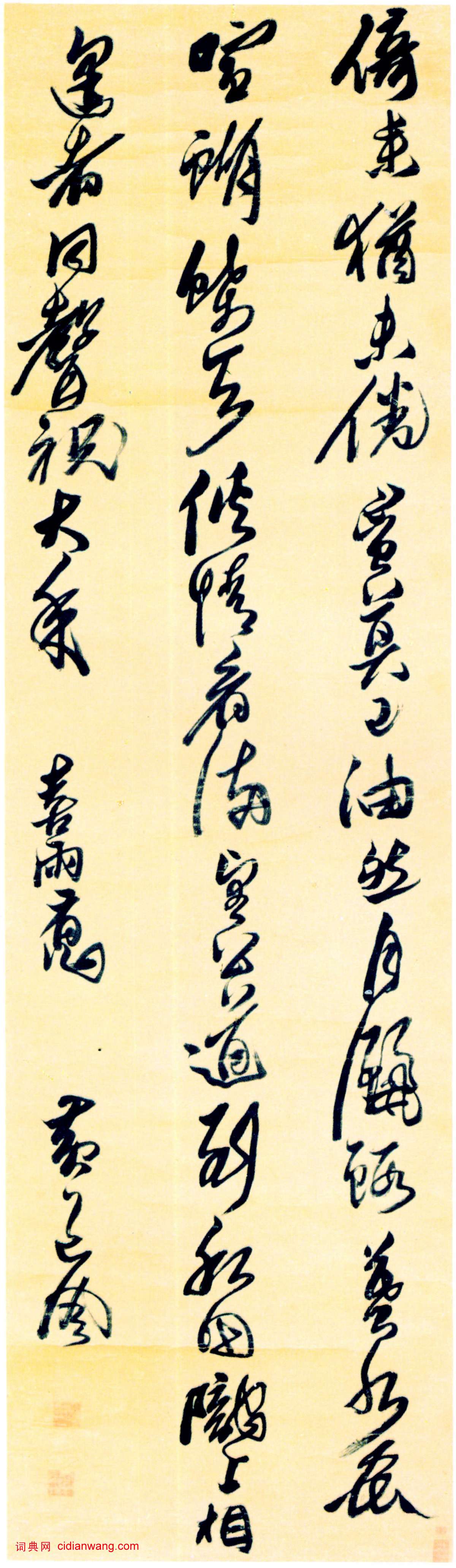 黃道周《喜雨詩軸》 行草 173.8×49.8cm,北京故宮博物院藏