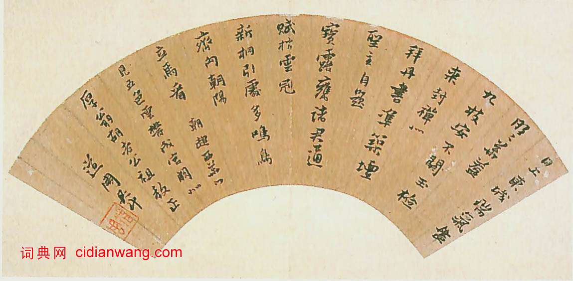 資源下載魏晉書法唐朝書法宋朝書法元朝書法明朝書法清朝書法近現代書法字典網>> 歷代書法>> 明朝>> 黃道周行楷《日上東城扇》正文 黃道周行楷《日上東城扇》作者:黃道周 書體:行楷 黃道周《日上東城扇》紙本 行楷 35×63.5cm 台北故宮博物院藏2018-6-9 14:40:25 黃道周的相關書法作品:黃道周行書《贈湘芷諸友別苕水詩軸》 黃道周行書《示同學文軸》 黃道周行草《答諸友詩卷》 黃道周行草《偶逢越鳥信五律詩軸》 黃道周蔡玉卿小楷《書法合卷》 黃道周行草《讀倪鴻寶疏五律詩軸》 黃道周行草《倚鋤五言詩軸》 黃道周楷書《自作詩六首詩冊》 黃道周行書《贈抑庵將入會稽詩軸》 相關文章:包世臣草書《春暉準平八言聯》 (草書)包世臣《草書春暉準平八言聯》粉箋本草書 171.5×30cm 深圳市博物館藏釋...北魏楷書《暉福寺碑》 (楷書)《暉福寺碑》即《宕昌公暉福寺碑》,北魏太和十二年(488)刻,楷書,24行,每行...行書9大規律,如何寫好行書行書雖難,但是我們在學習的過程中可以找到一些規律,只要能夠在創作中熟練地掌握這些...皇甫沖·題唐寅《金昌送別圖》詩 (行書)【釋文】春日送忍齋母舅先生招游虎丘,漫賦。名山叨勝分,軒盡喜返趨。盤送黃金饌,醪...沈荃行草《臨前人法帖冊》 (行草)沈荃《臨前人法帖冊》紙本行草書 26×17cm 天津博物館藏 【資料來源】《中...南朝《梁蕭憺碑》 (楷書)南朝《梁蕭憺碑》,貝義淵書。 貝義淵,南朝,梁代書家。吳興(今屬浙江省)人。工書...祝允明·劉君文威聽泉記 (行書)【釋文】《劉君文威聽泉記》。聽泉之旨,在文威其詞。問及仆,大率推演物性,規擬人品...董其昌楷書《儲光義五言詩軸》 (楷書)董其昌《儲光義五言詩軸》紙本楷書 117.3×47.5cm 北京故宮博物院藏釋...黃庭堅《花氣熏人帖》 (草書)【釋文】花氣薰人慾破禪,心情其實過中年。春來詩思何所似,八節灘頭上水船。黃庭堅《...董其昌行書臨《米芾天馬賦》 (行書)董其昌行書臨《米芾天馬賦》釋文:天馬賦。方唐牧之至盛,有天骨之超俊,勒四十萬之數...