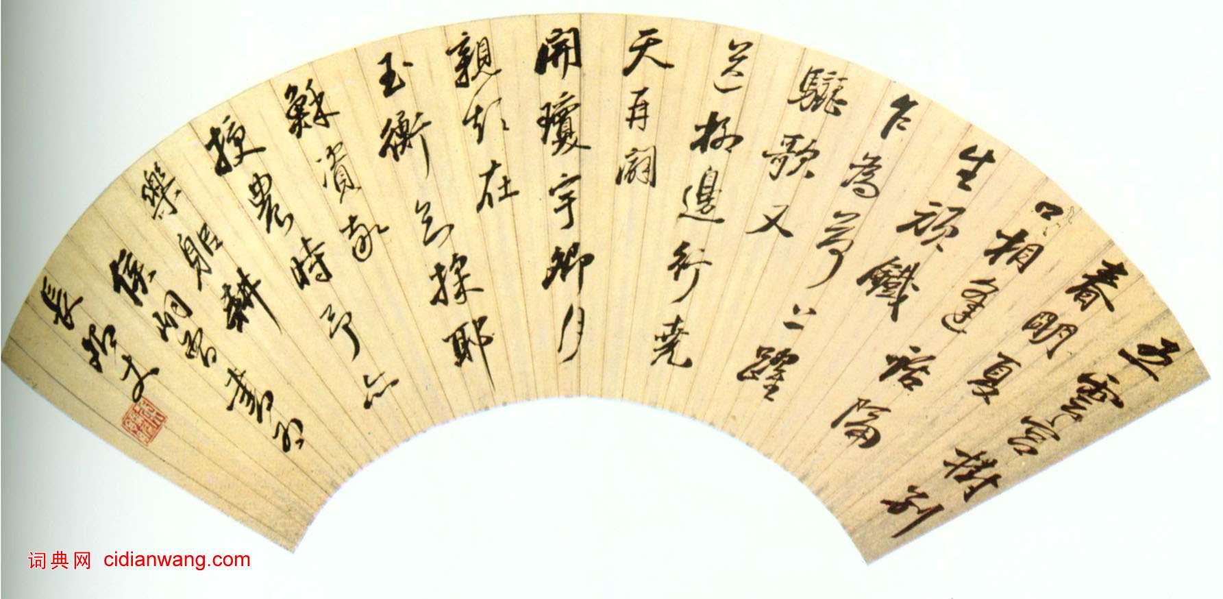 此扇詩中有“堯天再辟”語,似為崇禎即位後作。此書運筆流暢,灑脫自然,韻味冷郁,學問文章之氣,鬱郁芊芊,正自不俗。