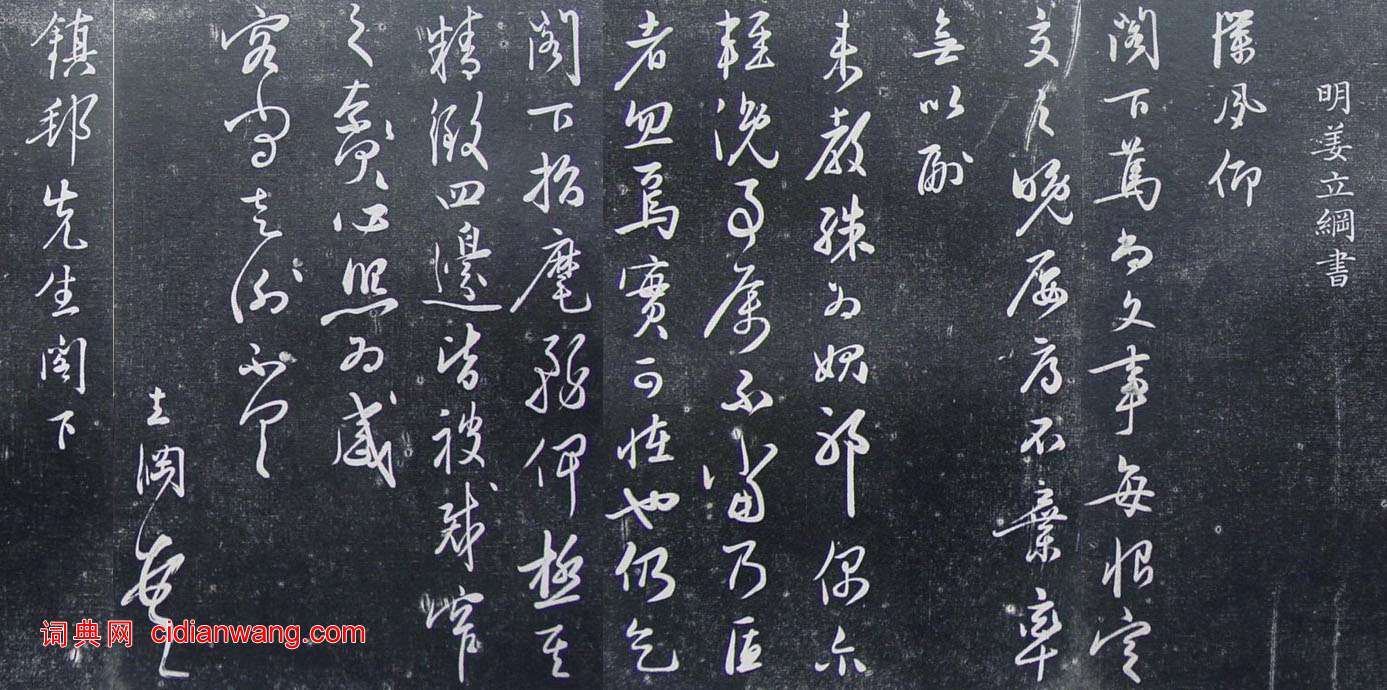 僕夙仰閣下篤尚文事,每恨定交之晚。屢辱不棄,率無以副來教, 殊為愧耶!偶爾輕浼,事屬不當,乃匠者忽焉,實可怪也。仍乞閣下指麾,務俾極其精緻,四邊皆被裁窄之,奈何,奈何!心照為感,容當 走謝。不具。 立綱頓首鎮邦先生閣下