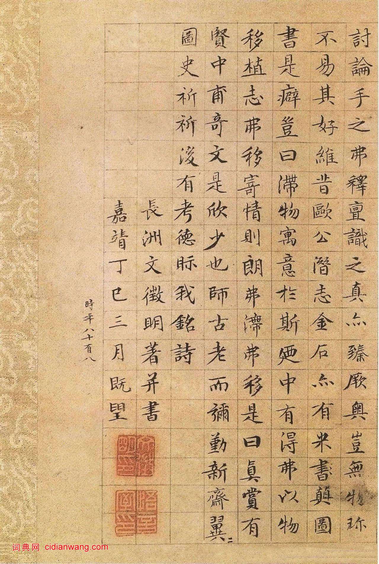 長洲文徵明著並書,嘉靖丁巳三月既望。時年八十有八。