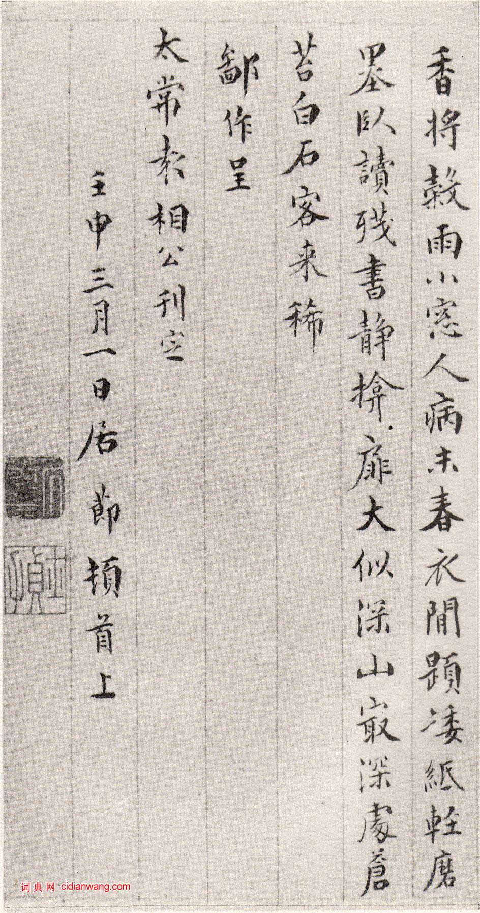 此作未見著錄,尾題“呈太常袁相公刊定,壬申(1572)三月一日居節頓首上”。左二印,上白文“成節印”,下朱文“士貞父”三字平列。時居節四十六歲,畫、詩、書俱臻成熟佳景。
